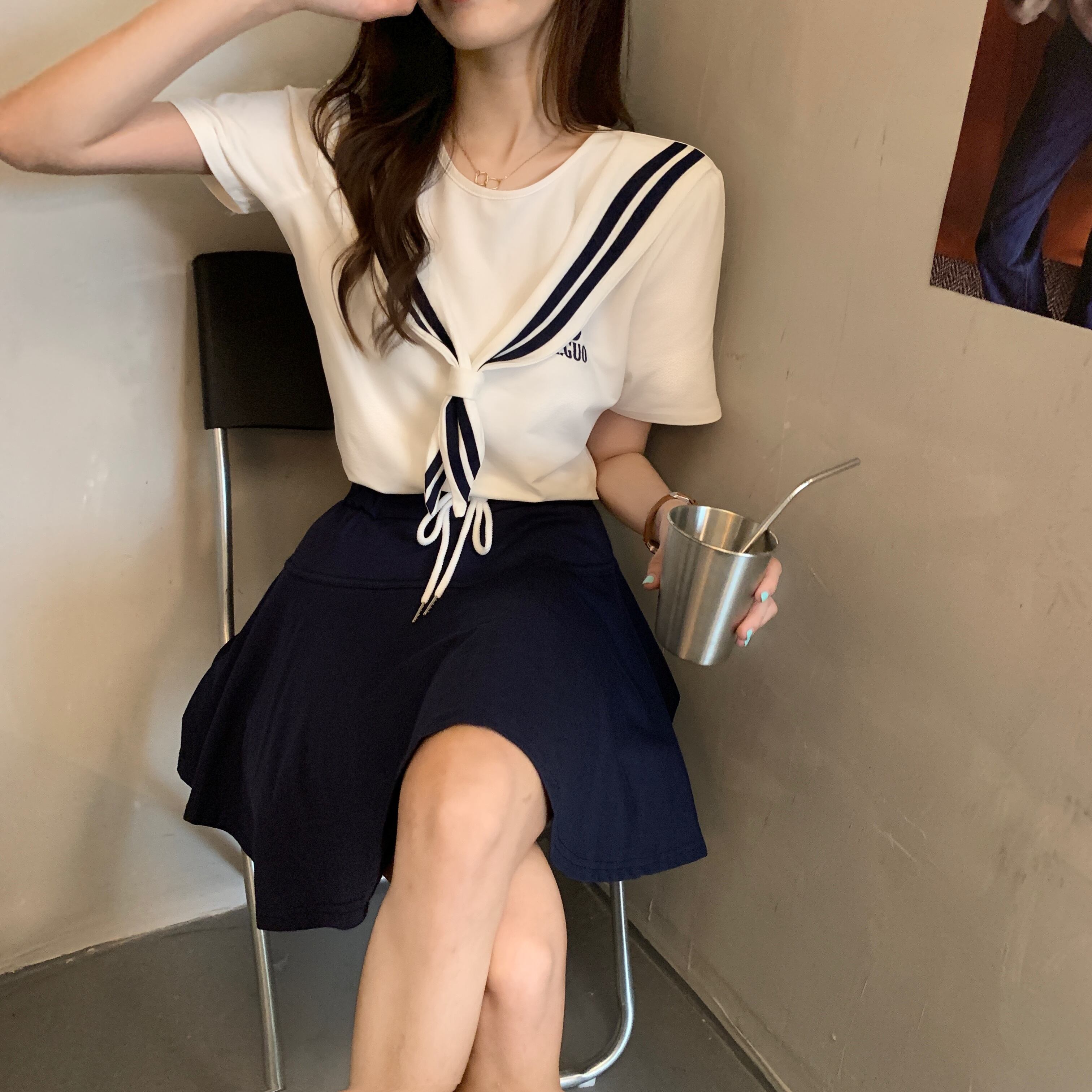 スカート 夏服レディースルーズネイビーハイウェストウェストプリーツショーツ ストリート 夏物 ウエスト YY41255341664