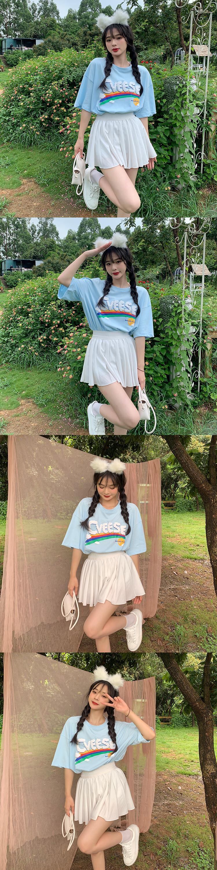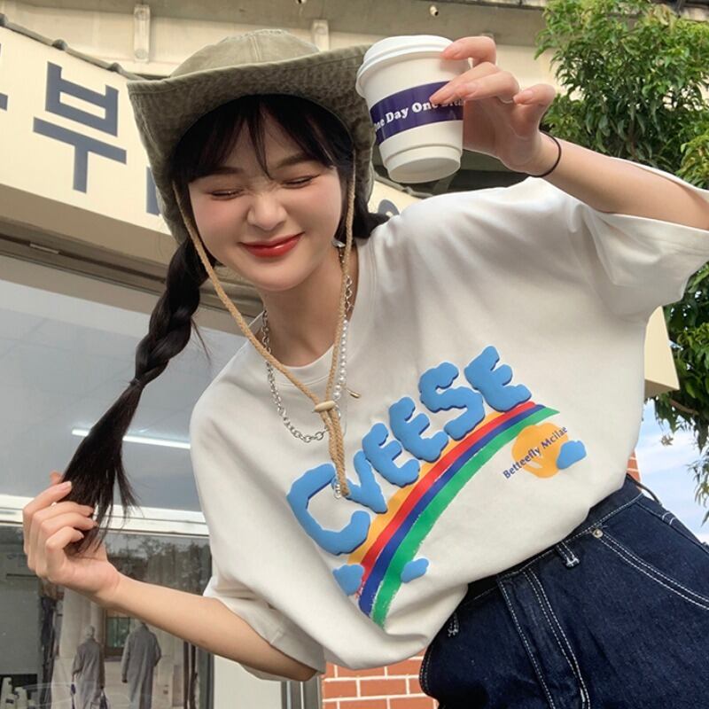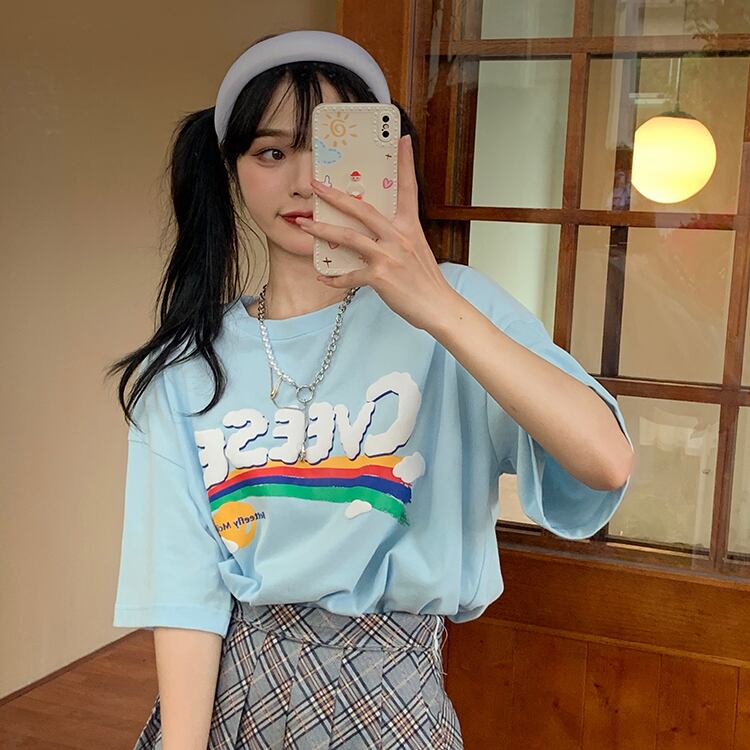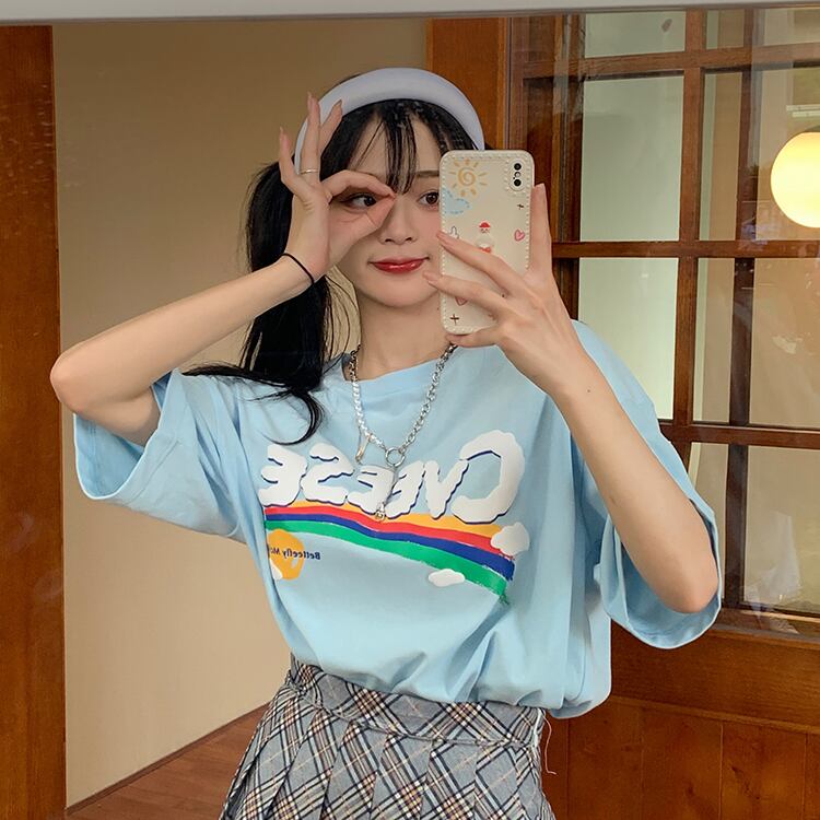 Tシャツシャツ 夏服プリントルーズ 夏物 ミドル丈 YY97244731888
