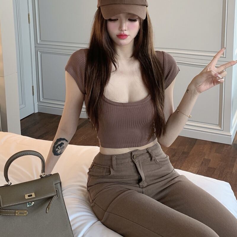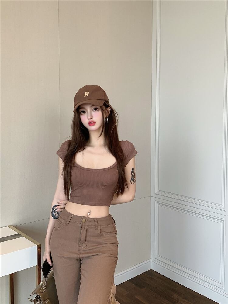 夏服スタイルソリッド カラーカジュアルゆったりTシャツスタンダードジーンズ ショートトップス レトロ 夏物 ソリッドカラー スクウェア YY38505502745