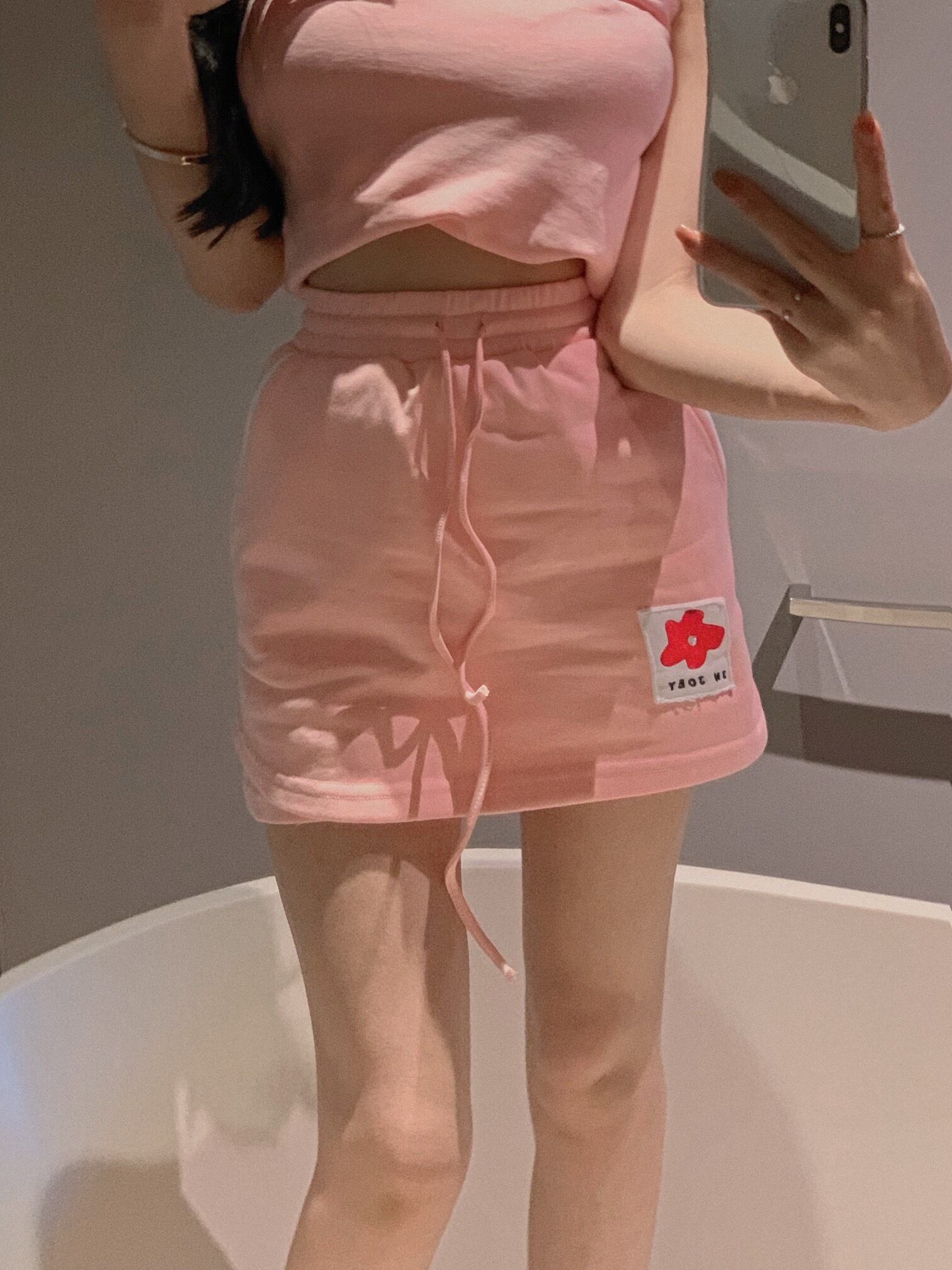 色:ピンクトップ,ピンクのスカート,ブラックトップ,黒スカート