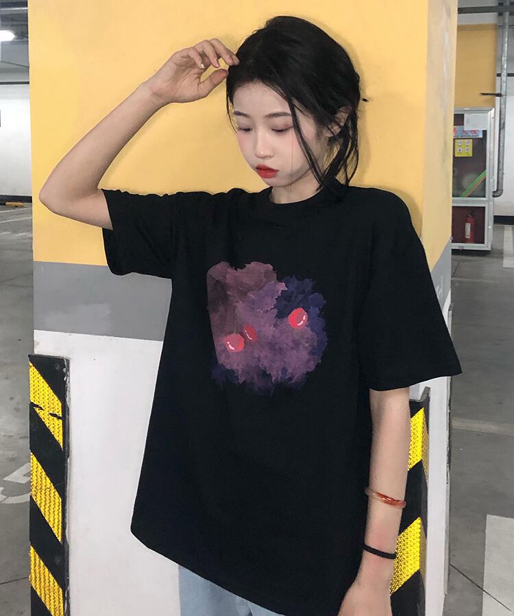 色:白の水彩さくらんぼTシャツ,黒の水彩チェリーTシャツ