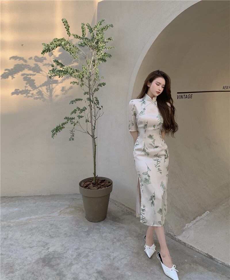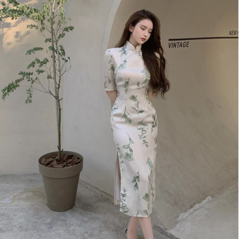 フローラルワンピースレディース夏服スタンダードスカート レトロ 夏物 花柄 スタイル ミドル丈 YY42805263766