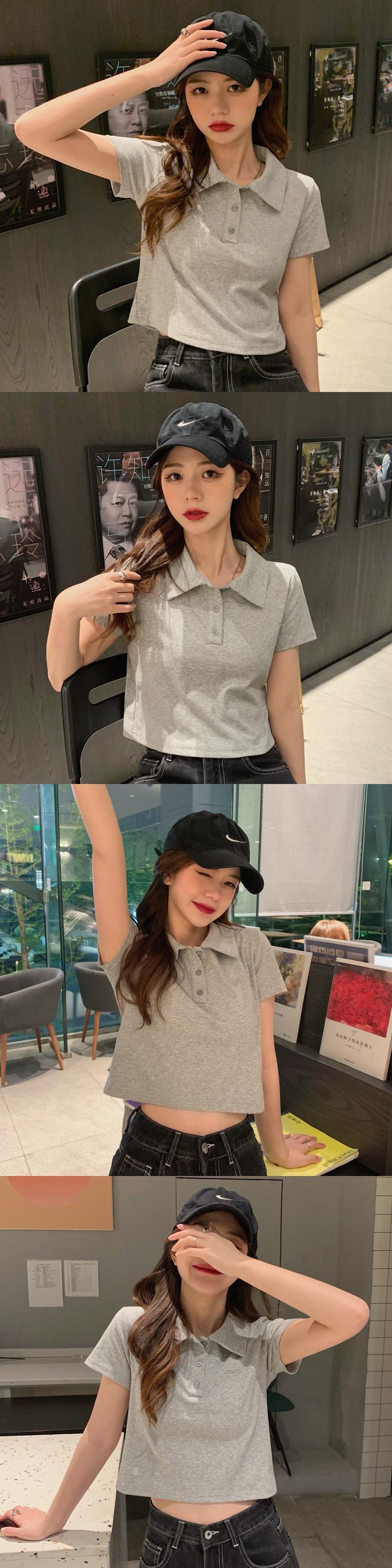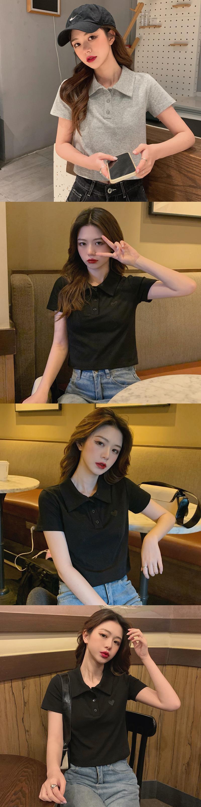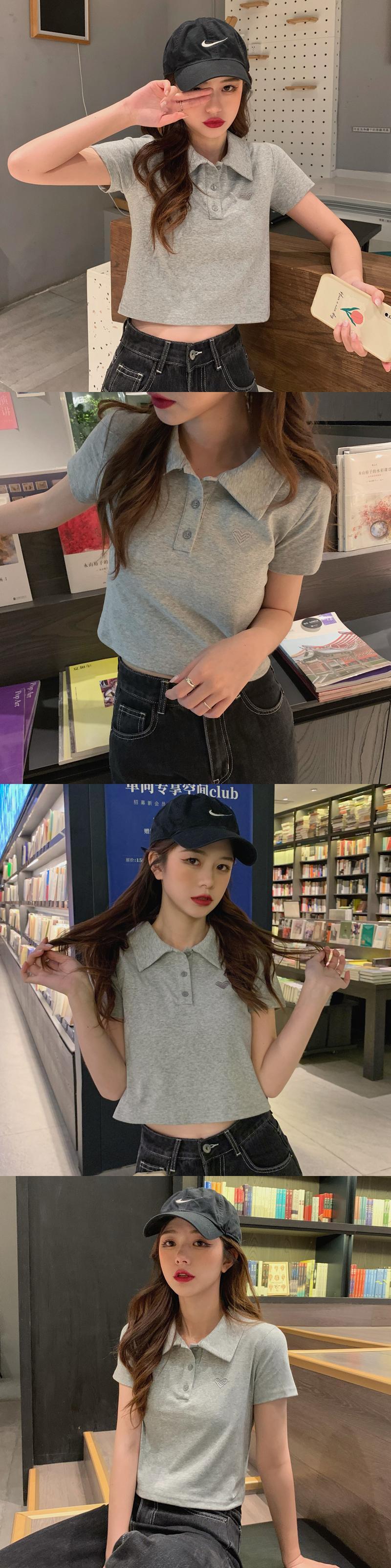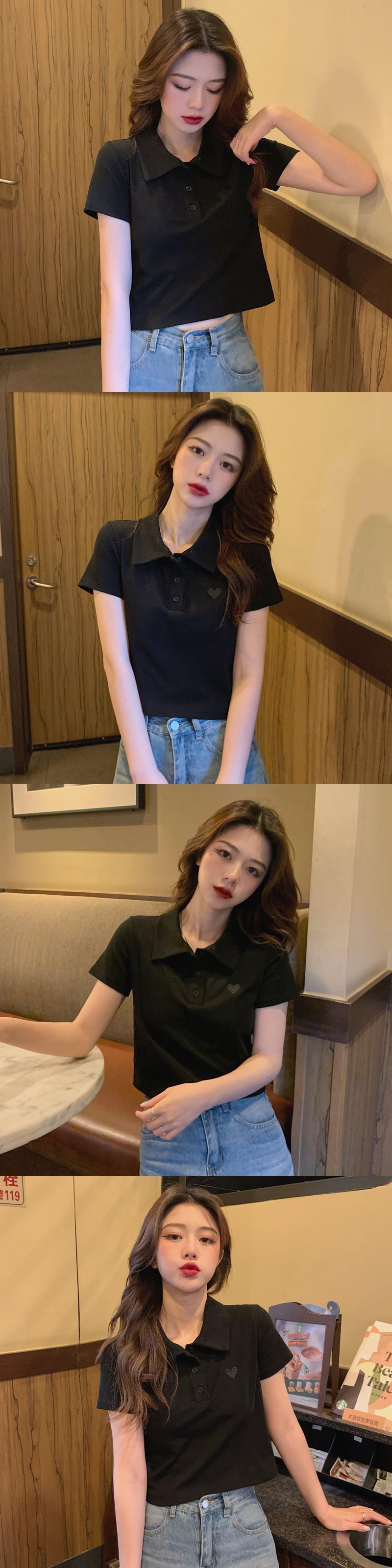 ショートトップス 夏服スタイルスリムカラー半袖スリーブTシャツ ハーフスリーブ 大人ガーリー スウィート キュート カジュアル 夏物 YY14668053375