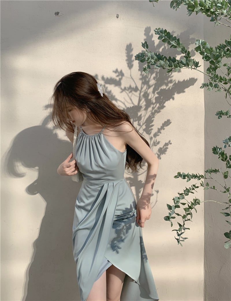 スカート ホルターワンピース夏服 エレガント 夏物 シルク ミドル丈 YY72682665663