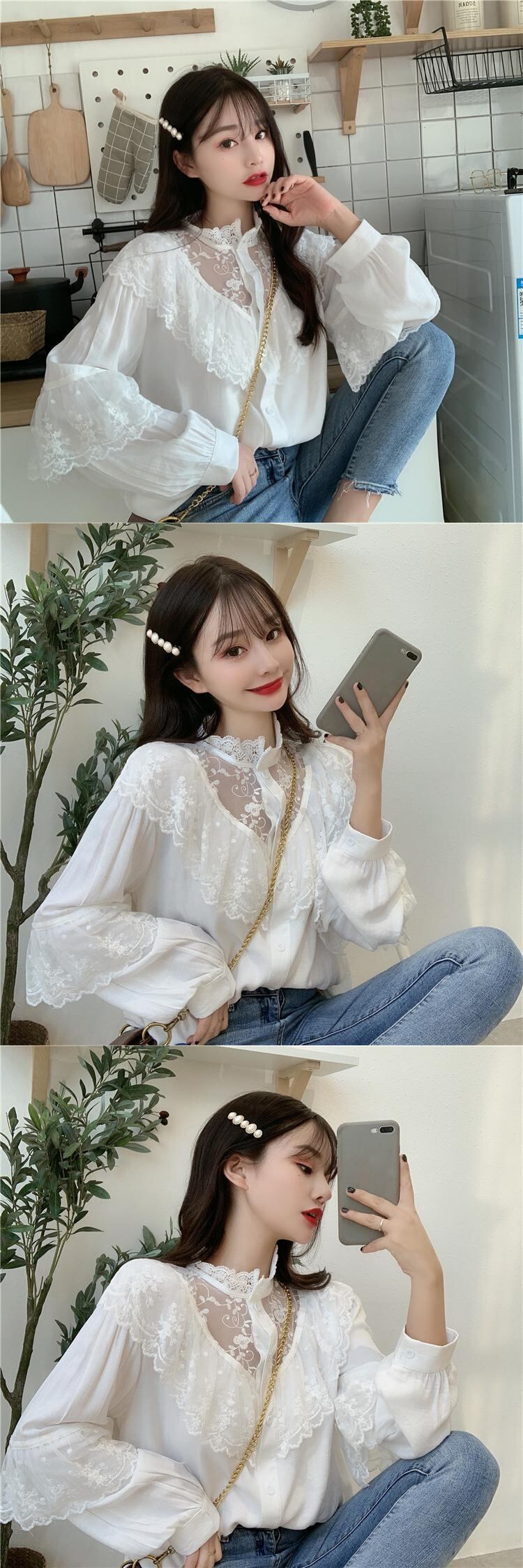 スタンダードレースシャツ レディース夏服スタイルカラートップス ロング レトロ 夏物 長袖 YY21886347486