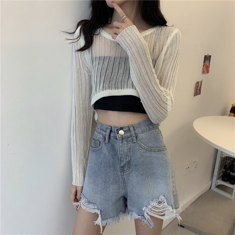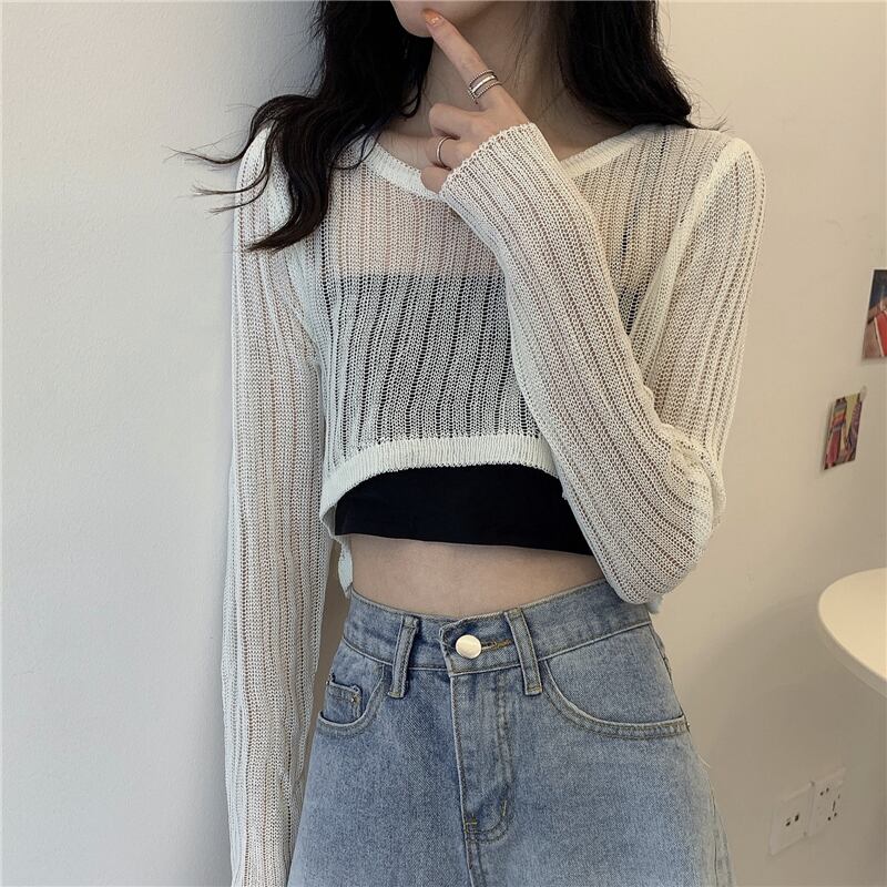 シャツ 夏服薄手ショートブラウス ニット ロング 夏物 長袖 YY84554704722