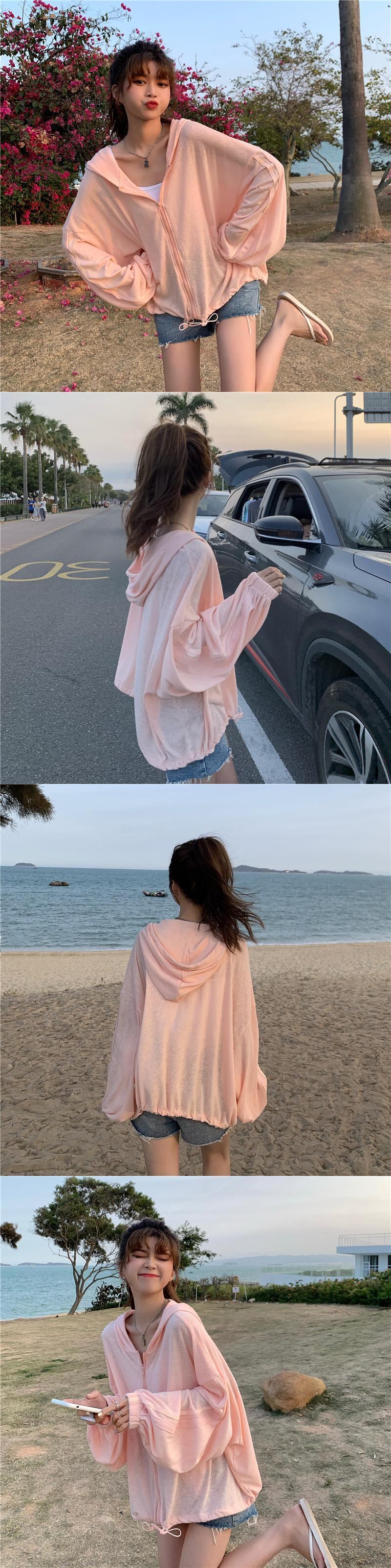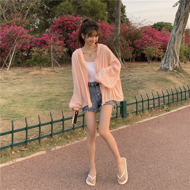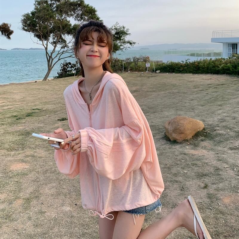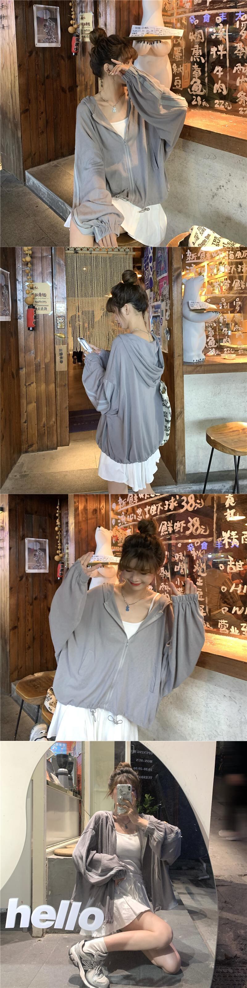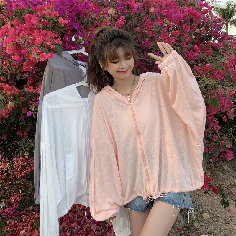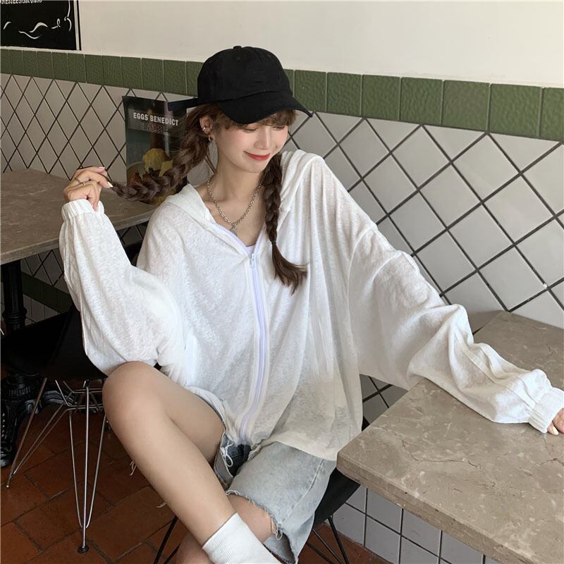 ホワイト薄手夏服コート カーディガンジャケット 韓国ファッションルーズ 夏物 YY53799703684