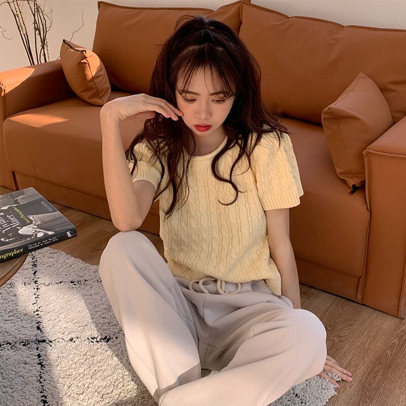 ショートTシャツシャツ 夏服韓国ファッションカジュアルゆったりスタイルニットトップス トレンド 夏物 YY46467928486