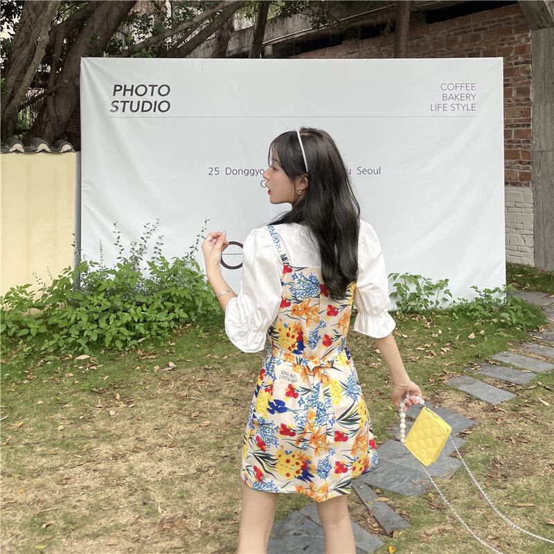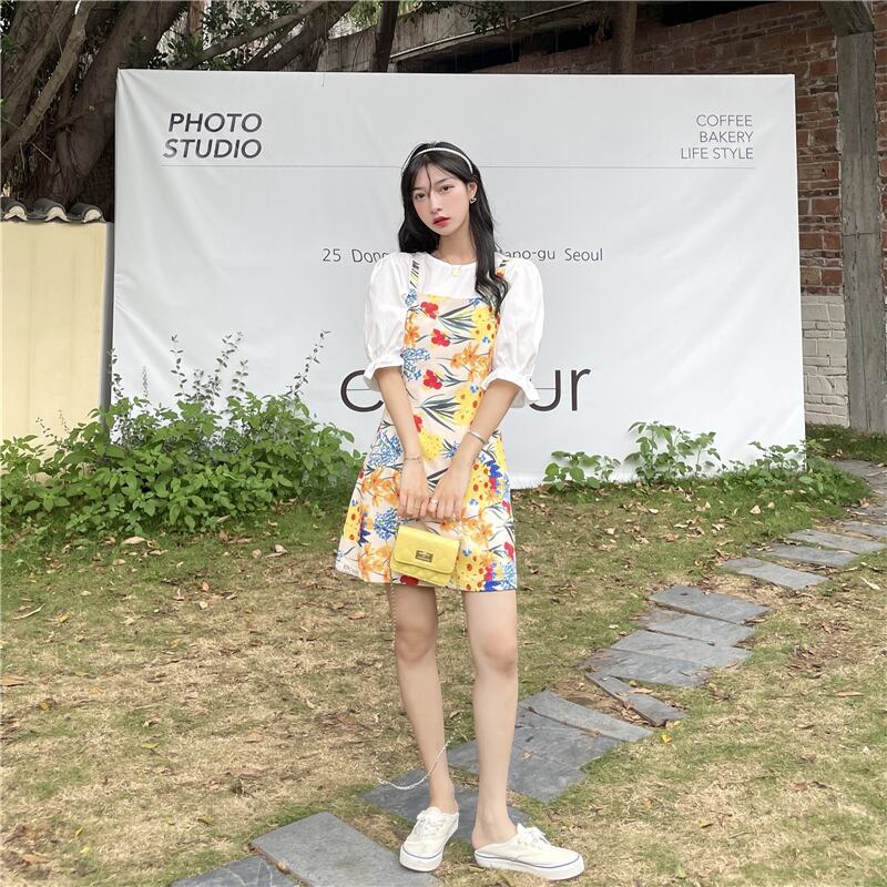 色:ホワイトトップ,ウエストサスペンダースカート