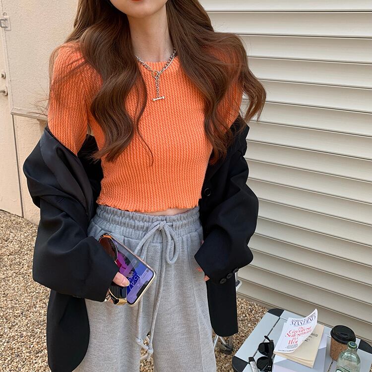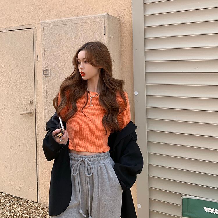 Tシャツシャツ レディーススプリング韓国ファッションスタイルクロップドショートトップス スリムゆったり ロング 春物 長袖 YY78359150320
