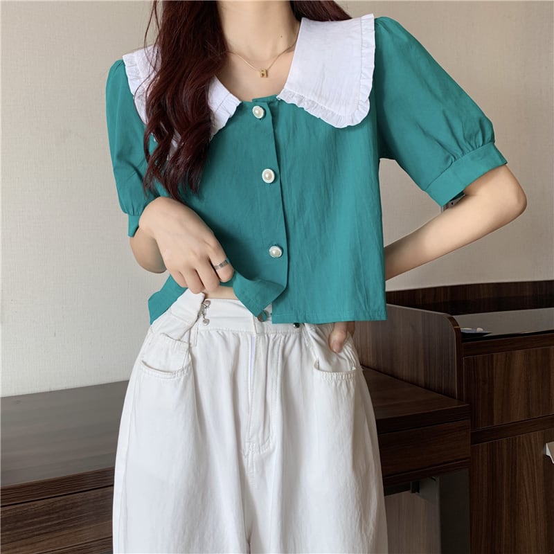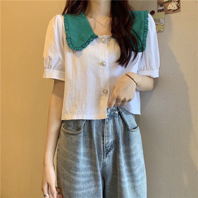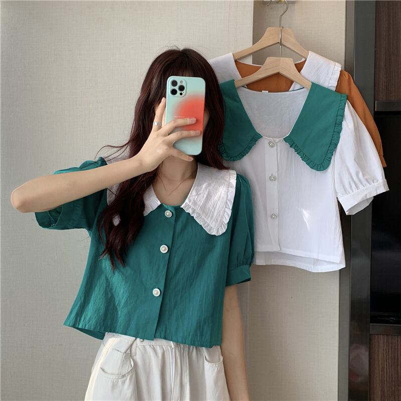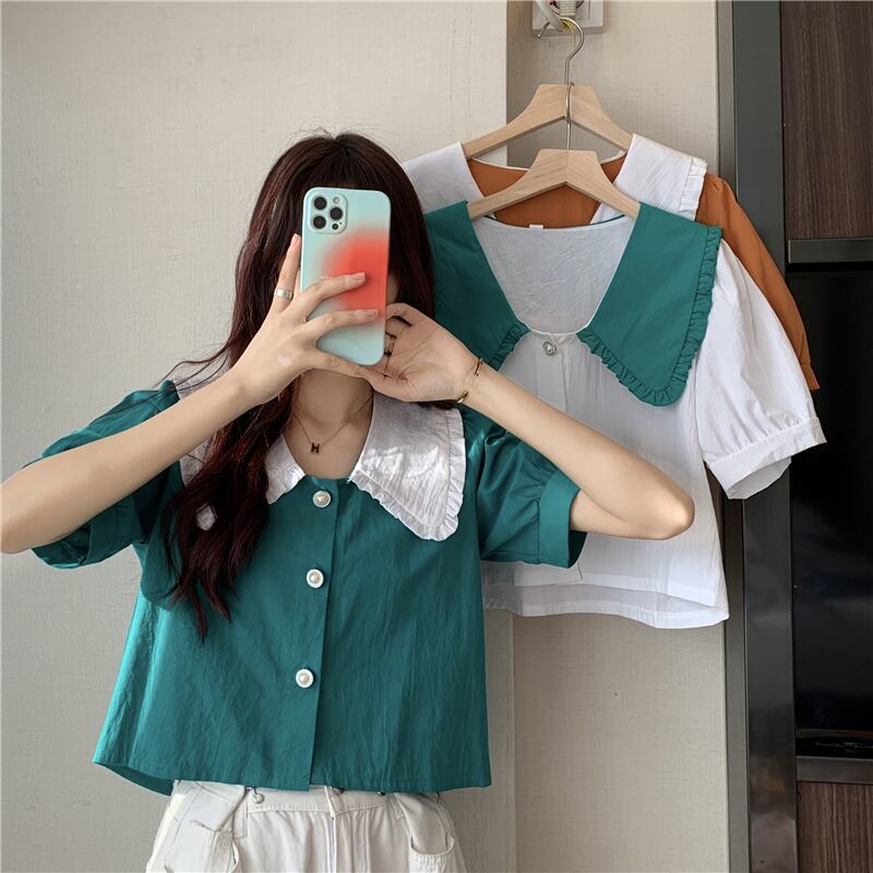 シャツ 夏服薄手カラースリーブルーズショート 夏物 YY61414866512