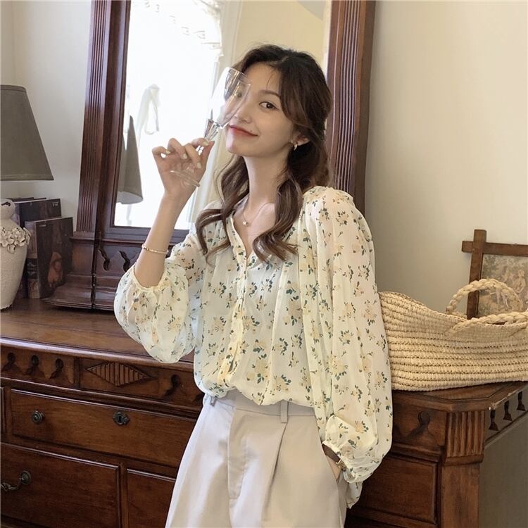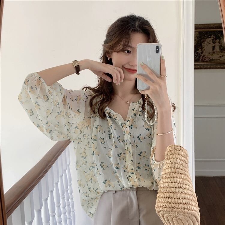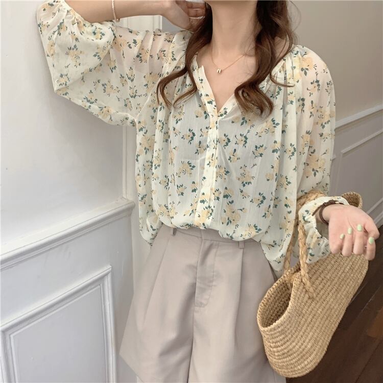 シャツ ブラウス 夏服薄手フローラルスリーブシフォン 夏物 花柄 YY37215846100