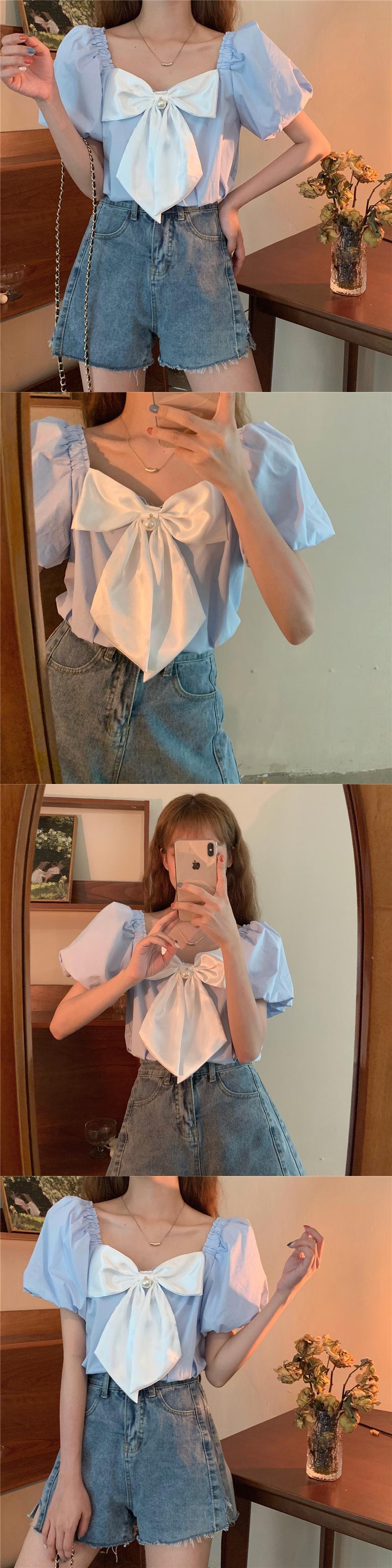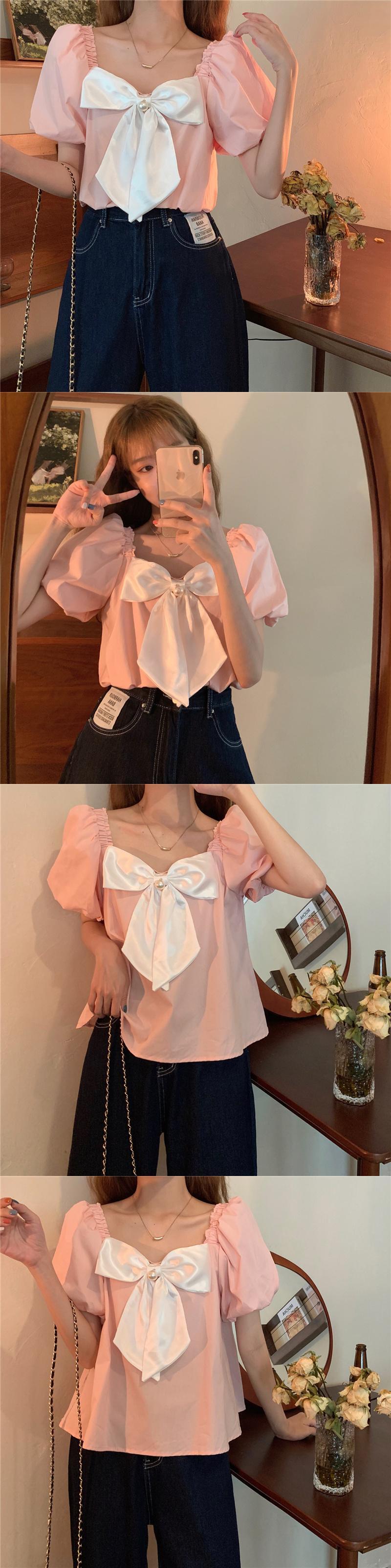 スタイルシャツ 夏服リボンルーズトップス 大人ガーリー スウィート キュート カジュアル 夏物 YY14455597560