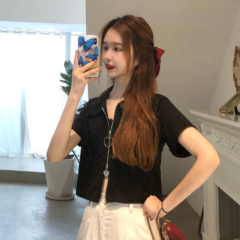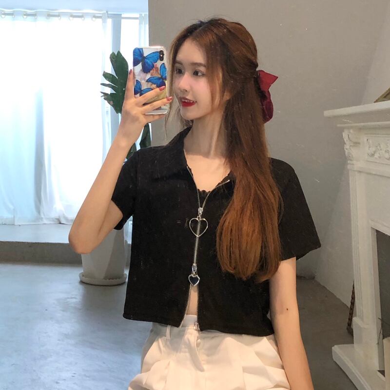 夏服韓国ファッションスリムジッパールーズTシャツトップス レディース 大人ガーリー スウィート キュート カジュアル 夏物 スタイル YY11644372425