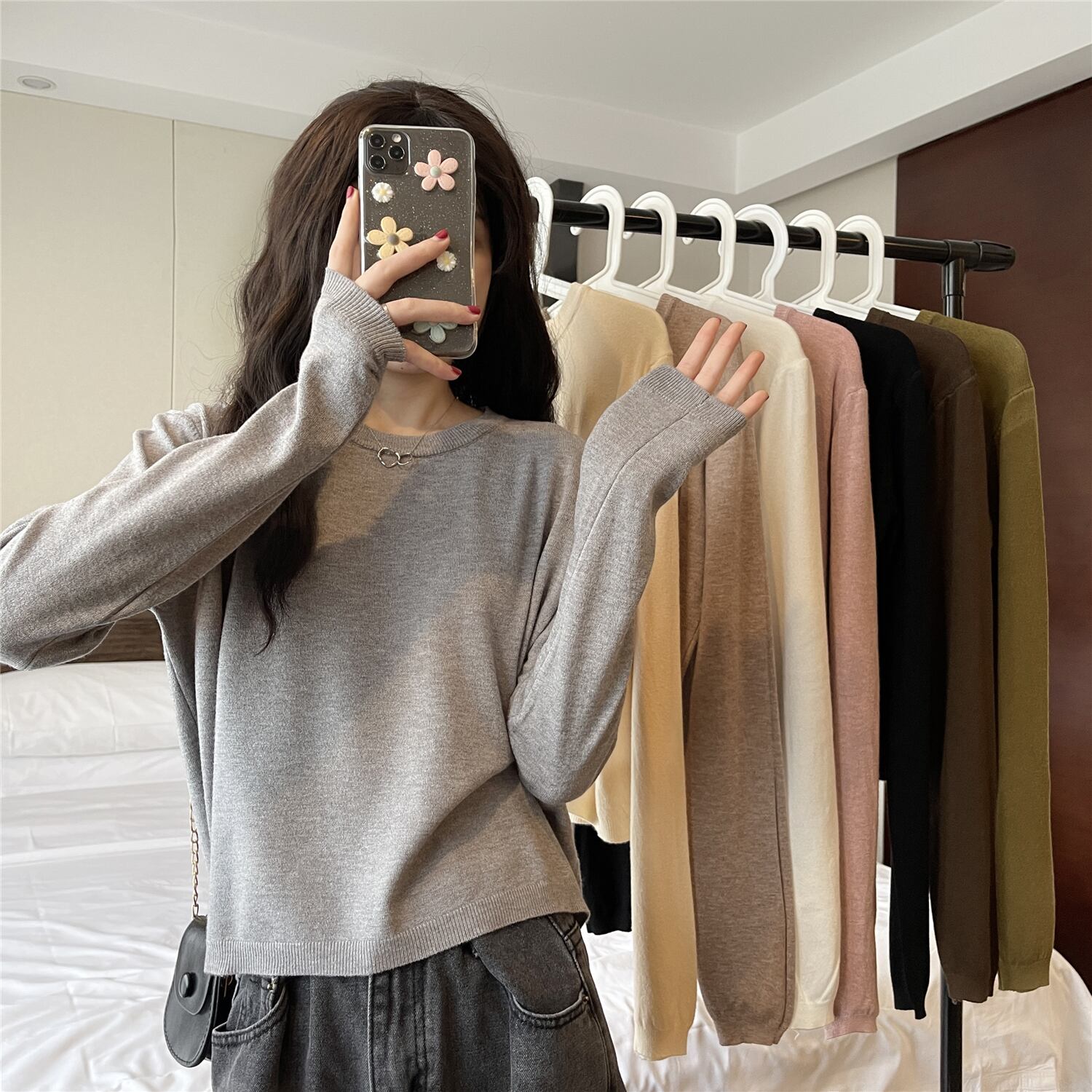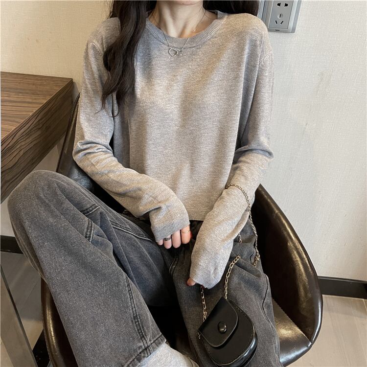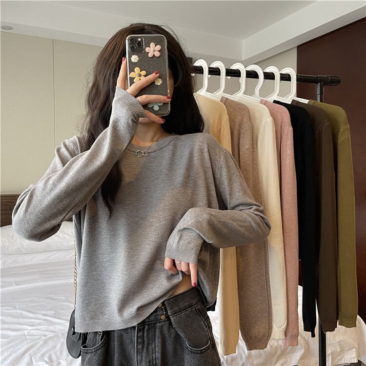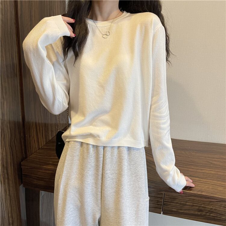 ショートトップス スプリング夏服ルーズ韓国ファッションニットTシャツシャツ ゆったり ロング 春物 夏物 長袖 YY93025457403