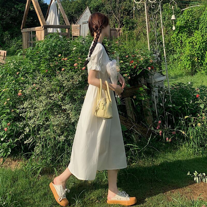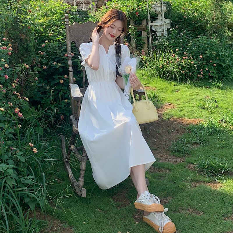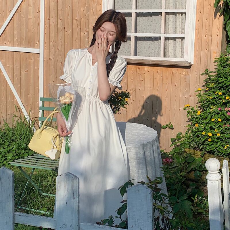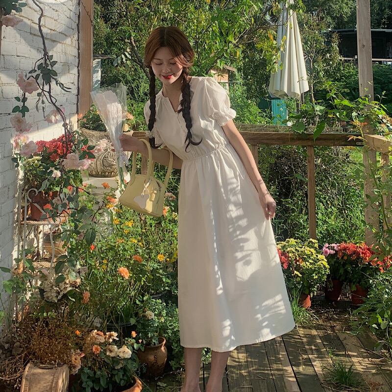 スリーブホワイトワンピースレディース夏服ウェスト薄手スカート 夏物 ウエスト SYJ86197952434