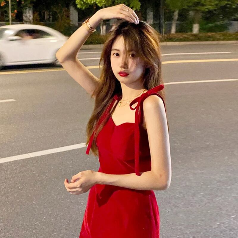 レッドワンピース夏服スタイルスリムショートスカート 夏物 SYJ96972091256