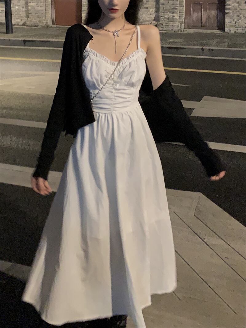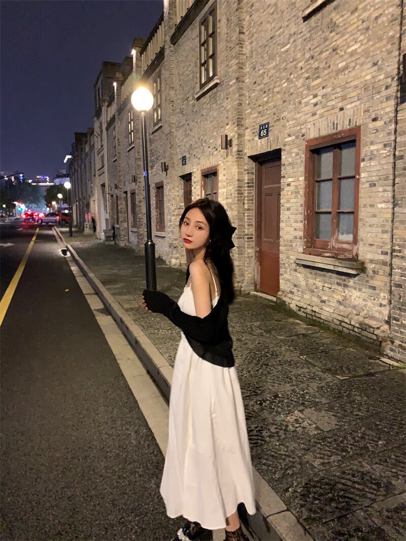 ホワイトワンピース夏服スタイルホルターロングスカート 夏物 SYJ83717460254