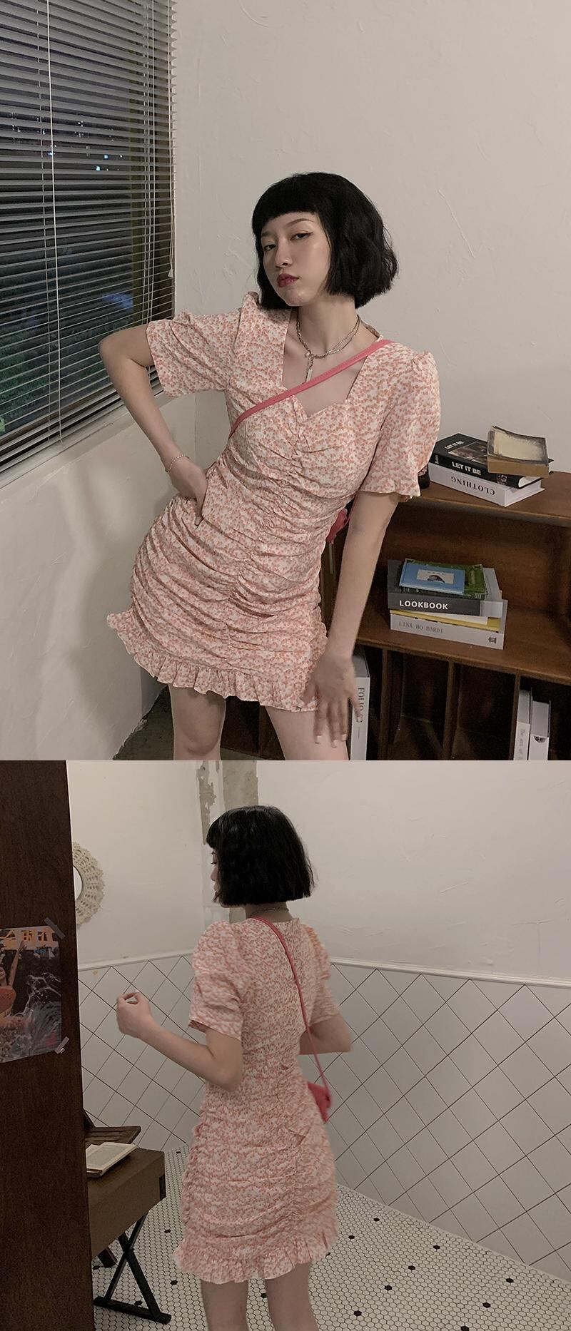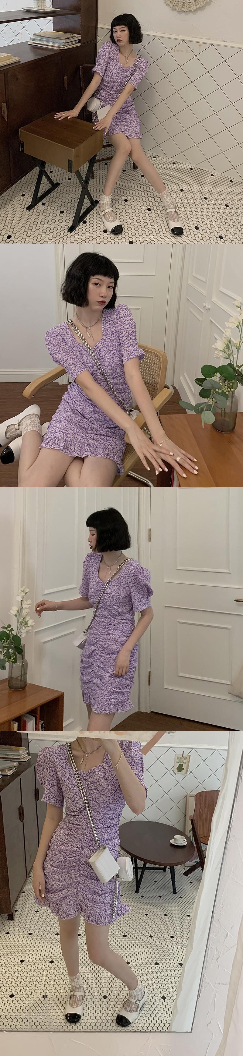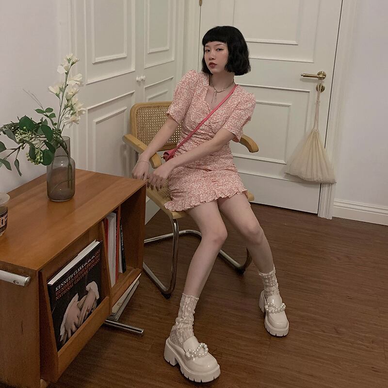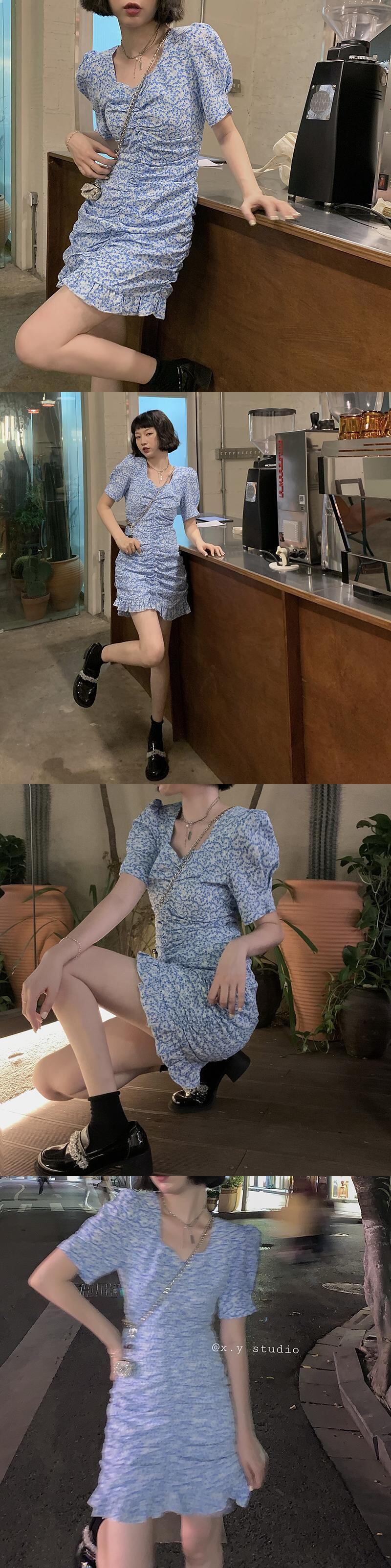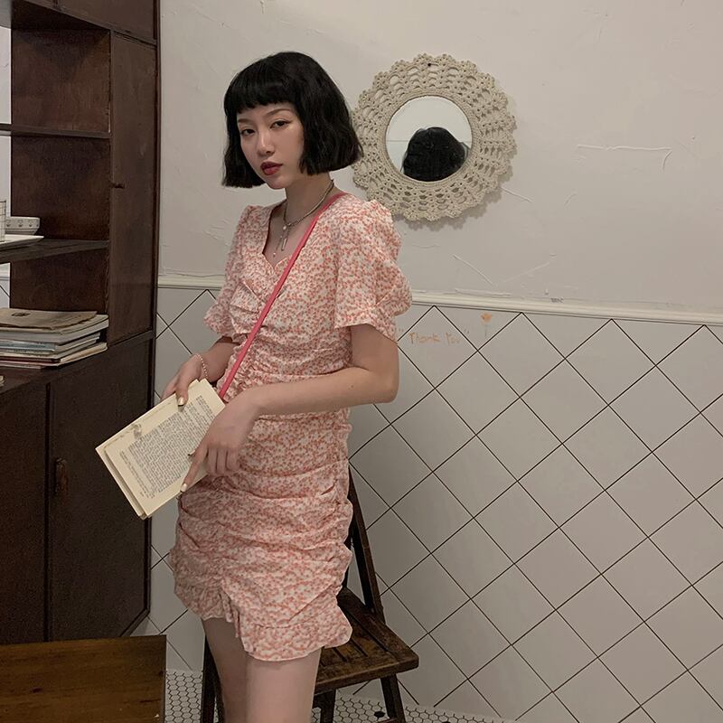 ブルースリムスカート Vネックフローラルワンピースレディース韓国ファッション夏服 夏物 花柄 YY60079945315