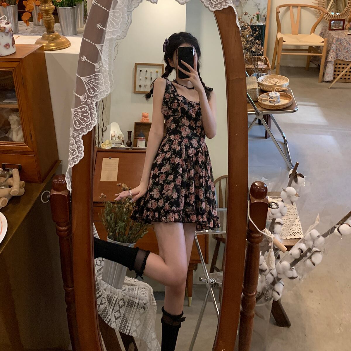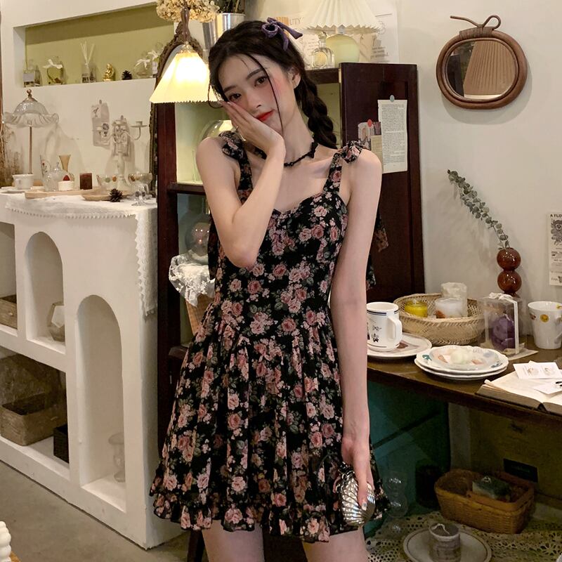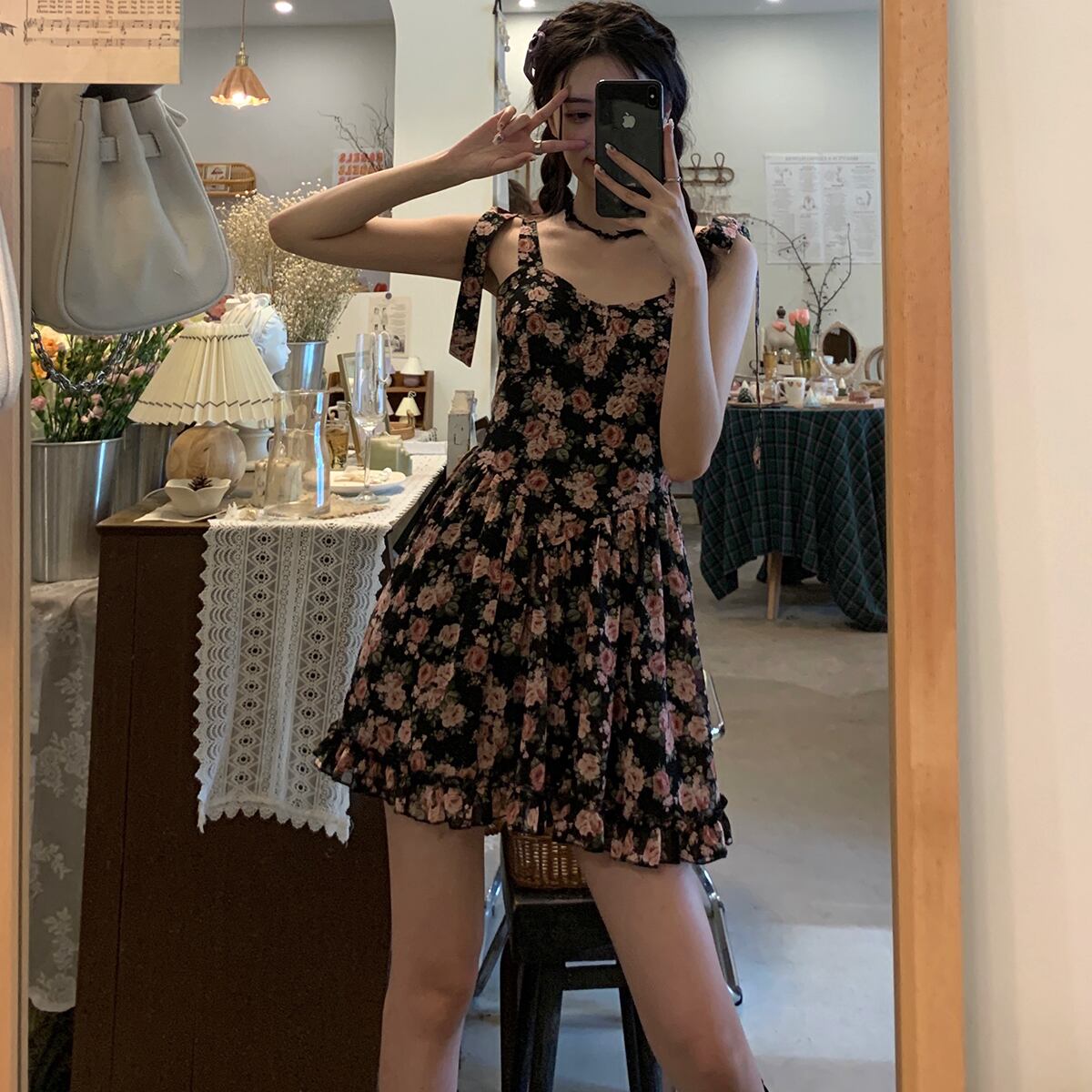 フローラルワンピースレディース夏服スリムショートスカート 大人ガーリー スウィート キュート カジュアル 夏物 花柄 SYJ41383969238