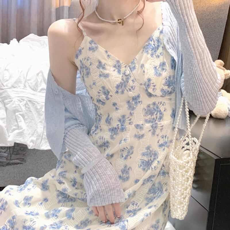フローラルワンピース夏服スタイルスリムロングスカート 夏物 花柄 SYJ32713656951