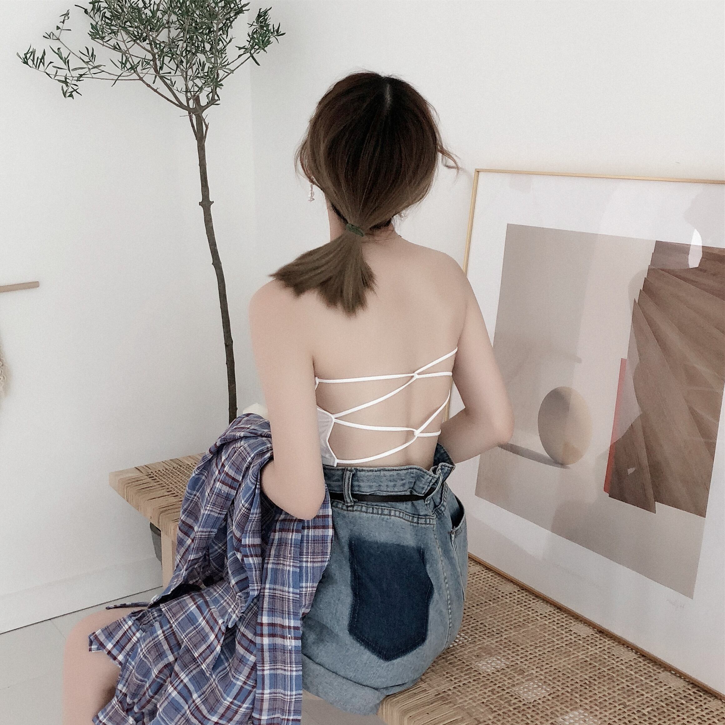 バックストラップレストップス ゆったりリング ブラ 薄手 レッド 指輪 YY71235071701