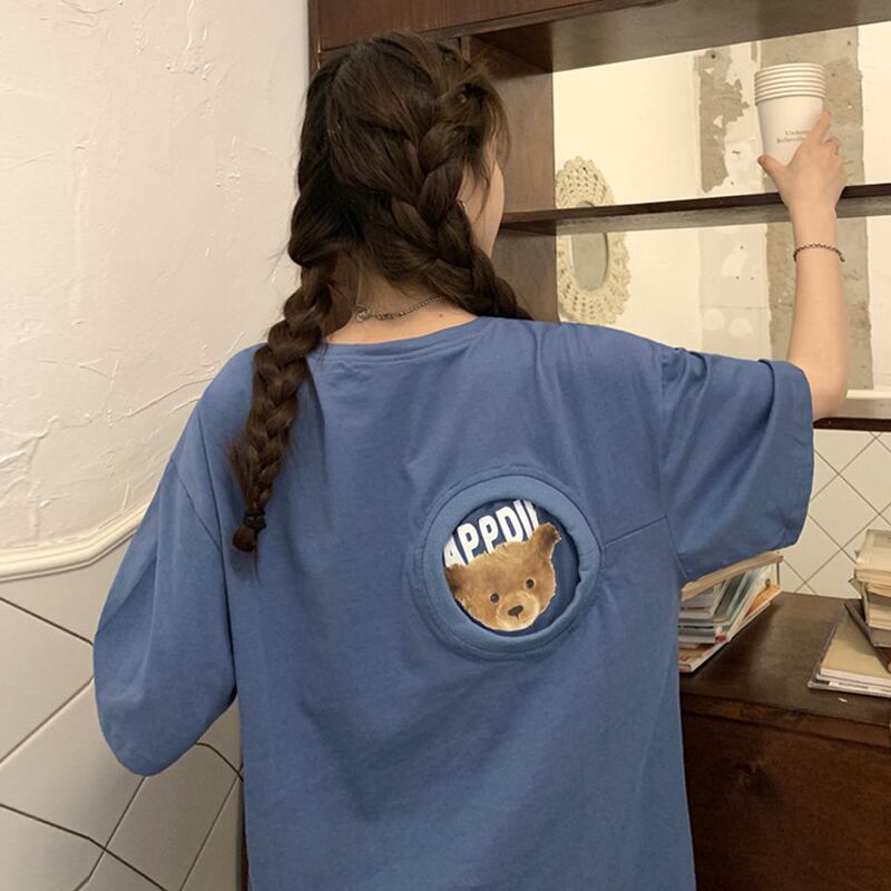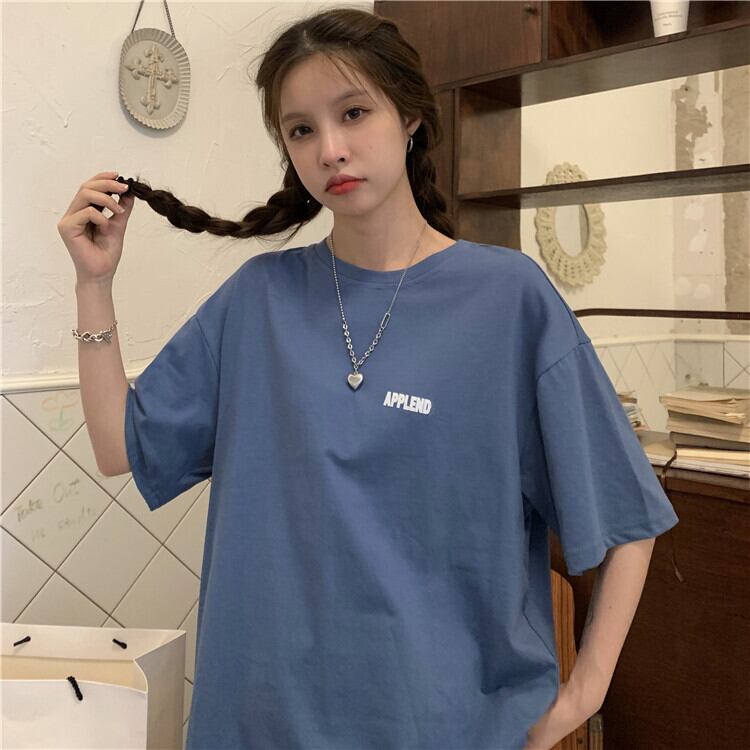 ブルーTシャツ夏服ルーズトップス トレンド 夏物 SYJ2043082215