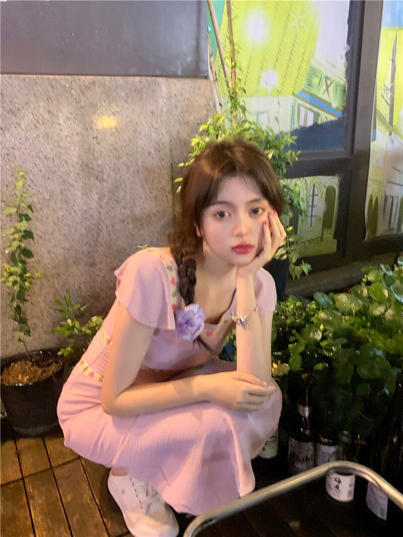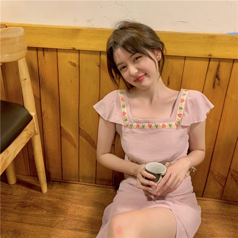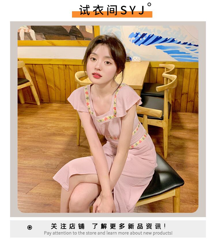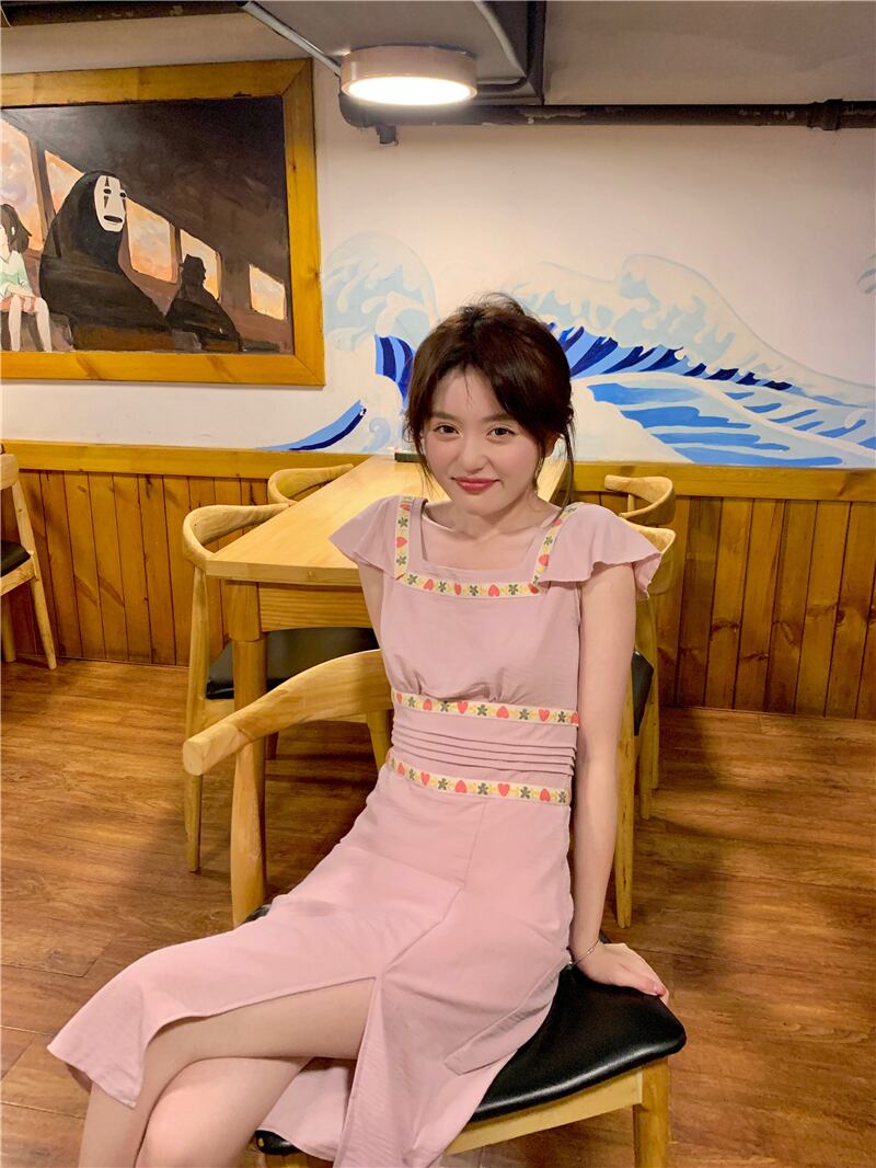 ワンピースレディース夏服スリムロングスカート ピンク 夏物 スクウェア SYJ94995884509