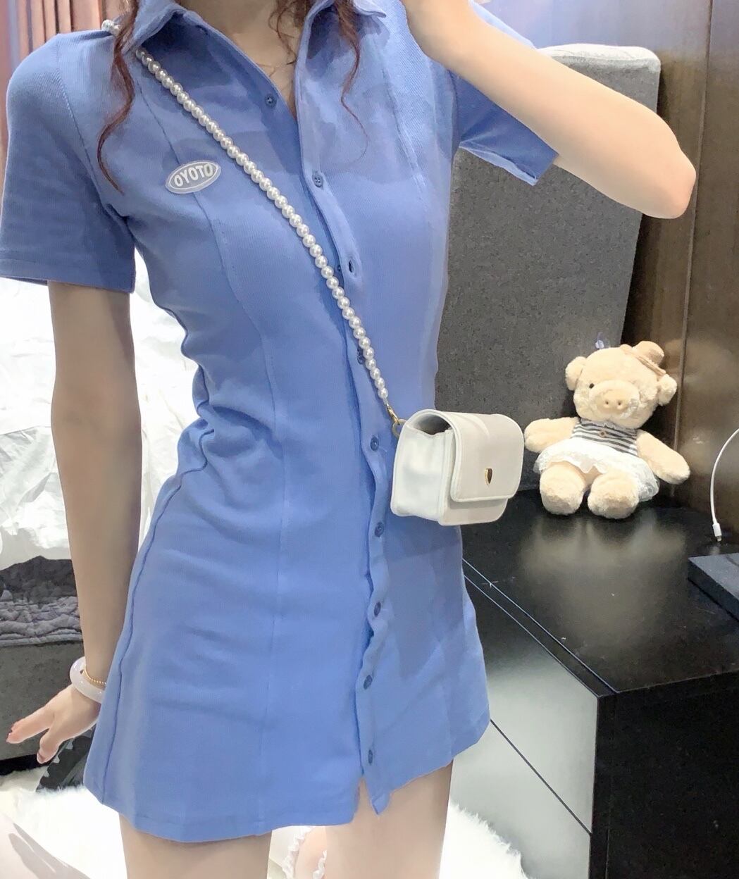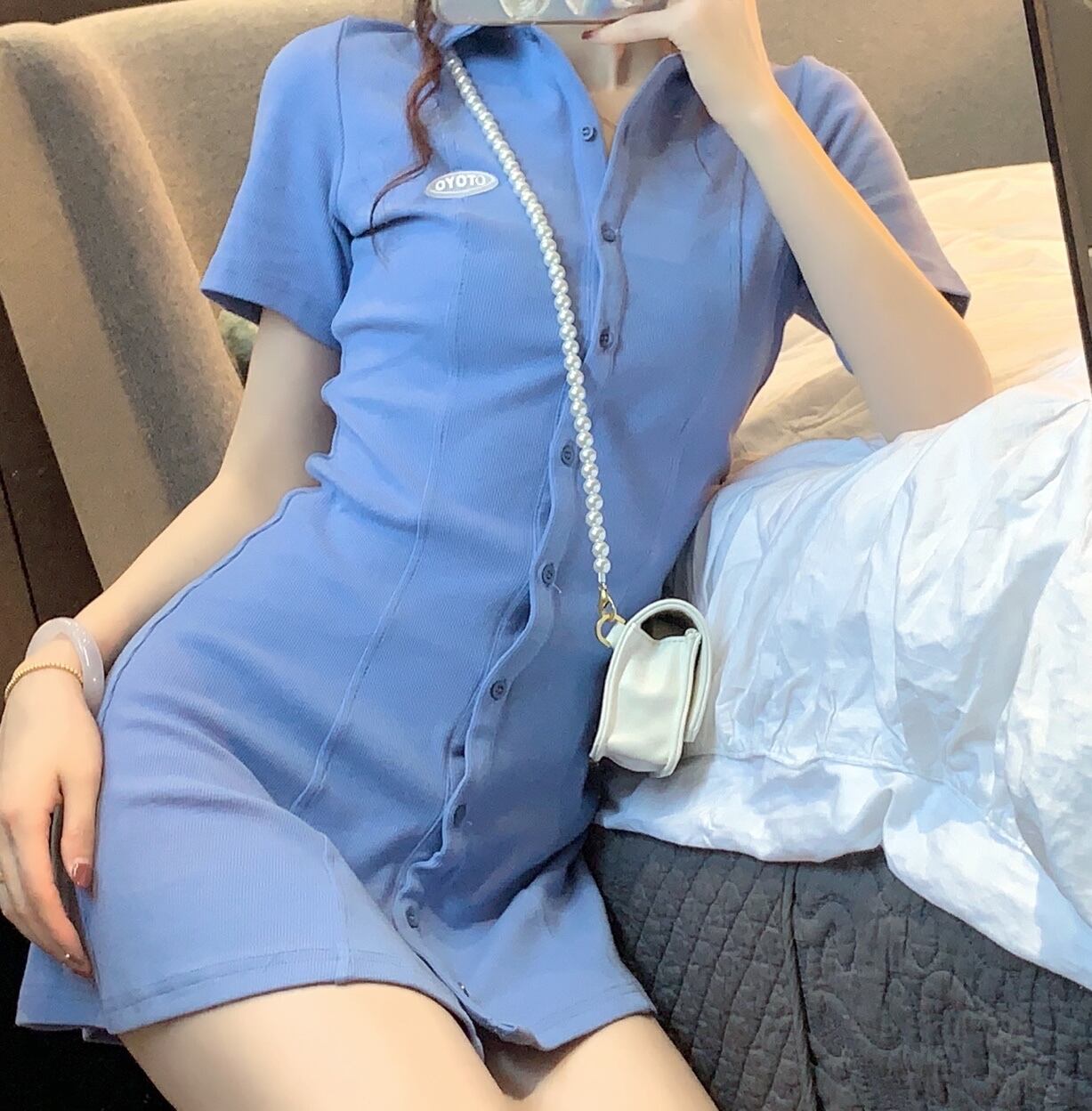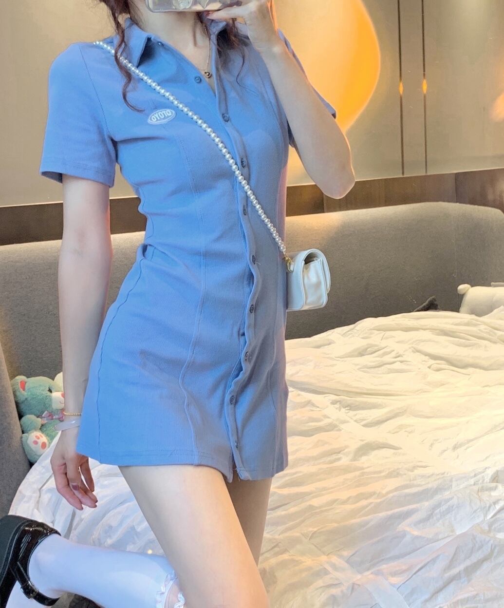 ブルーワンピースレディース夏服スリムショートスカート 夏物 SYJ13818245688