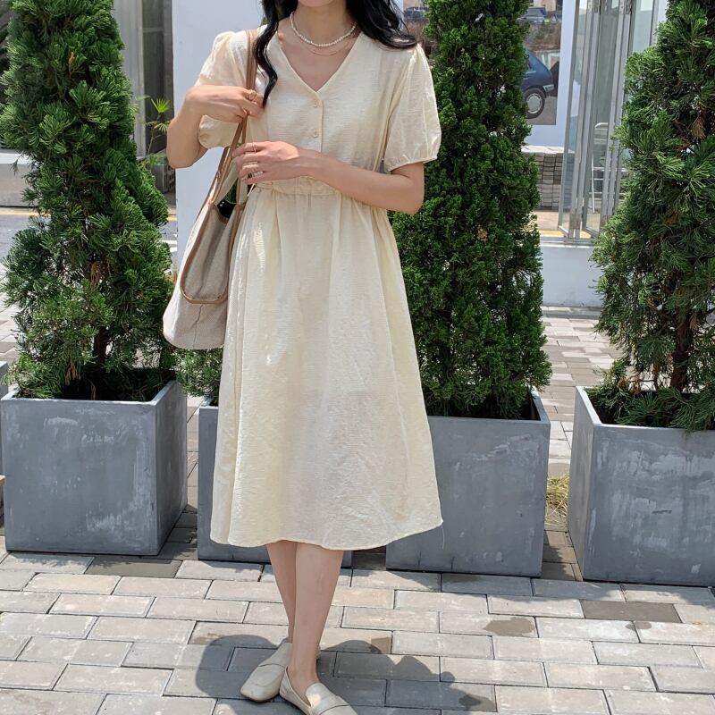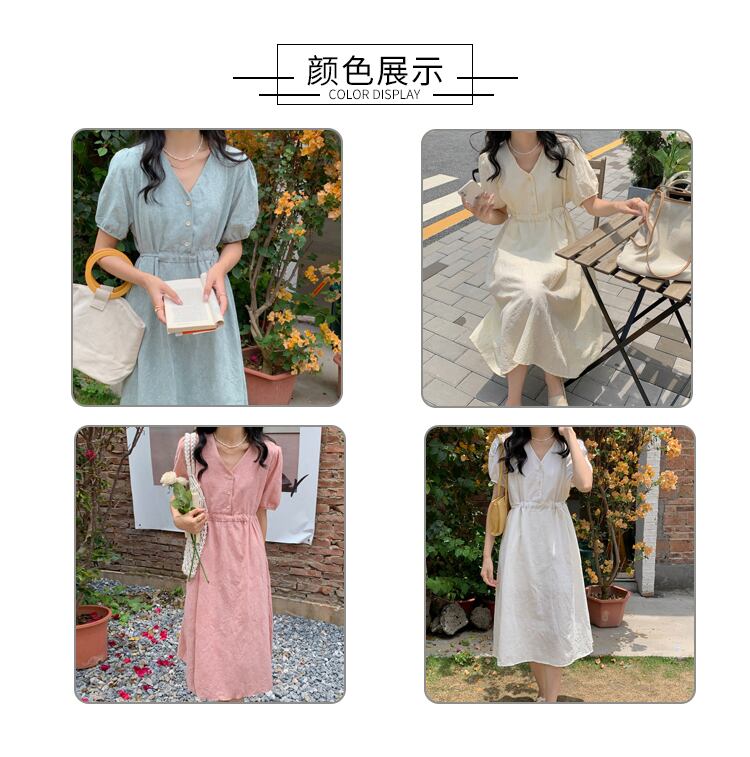 Vネックスリーブワンピースレディース夏服ロングスカート 夏物 SYJ50562053471