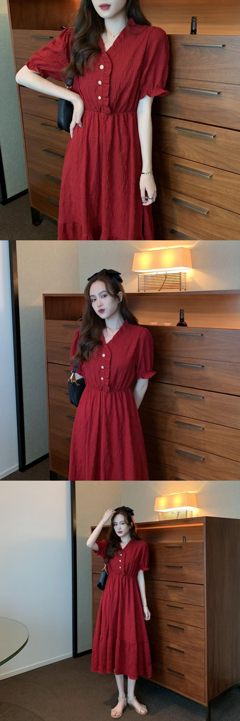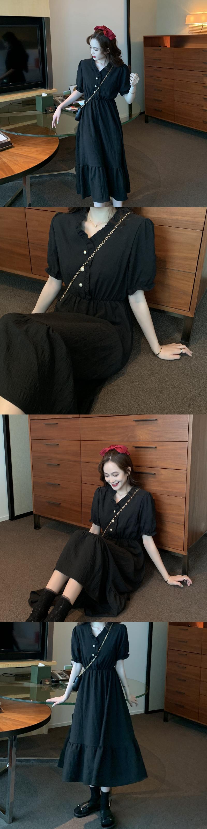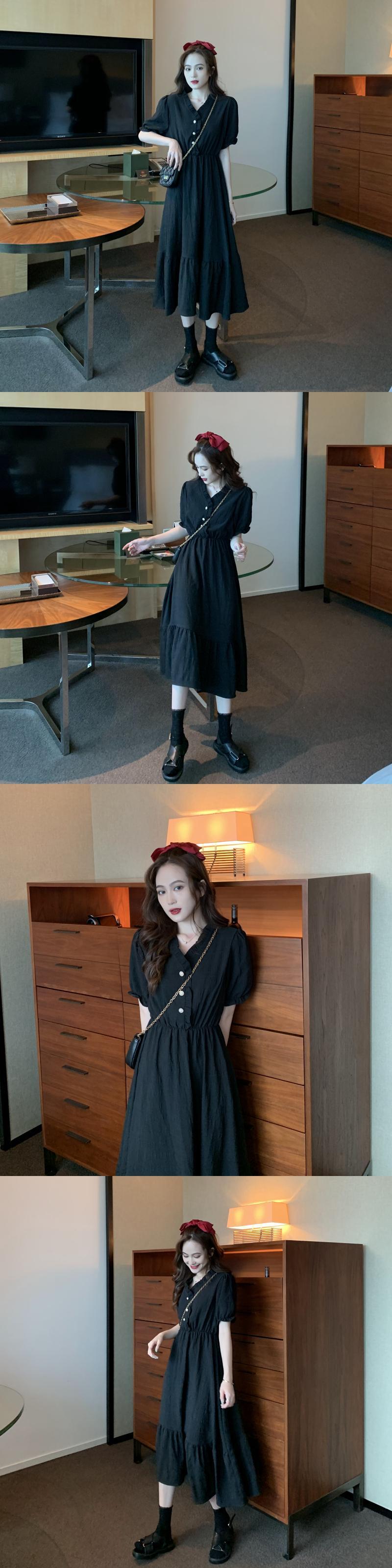 スタイルブラックワンピースレディース夏服Vネックスリーブウェストロングスカート 夏物 ウエスト SYJ15934232935