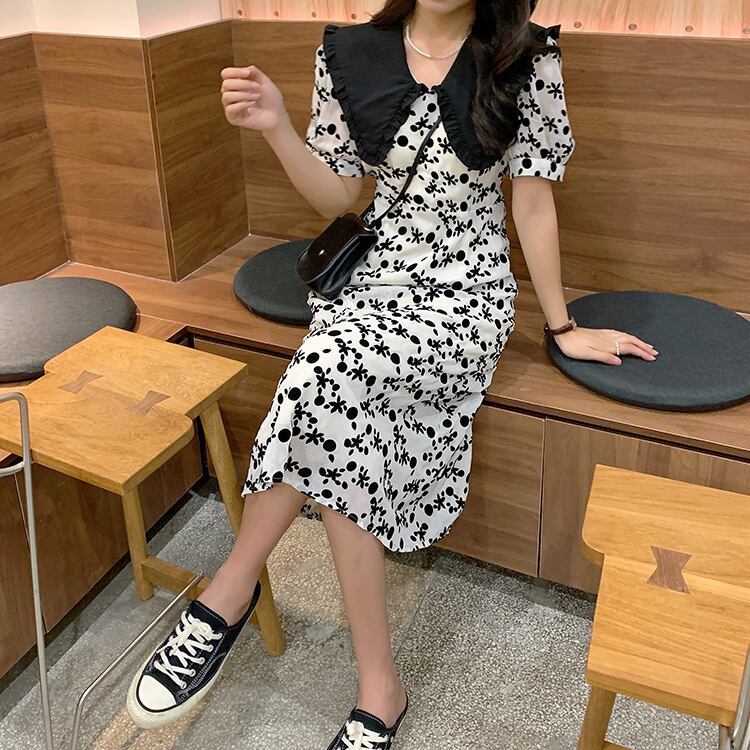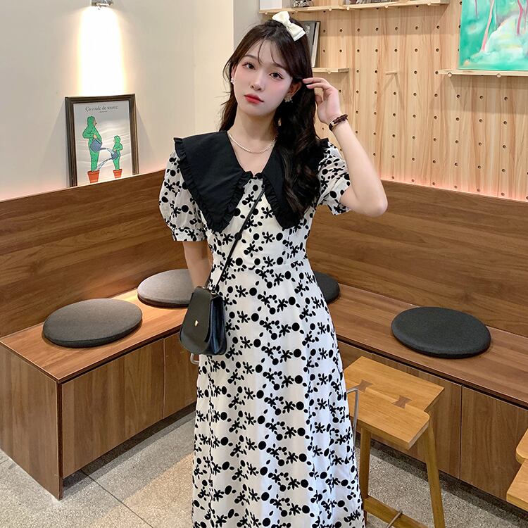 スリーブフローラルワンピース夏服スタイルカラーロングスカート 夏物 花柄 SYJ71148631185