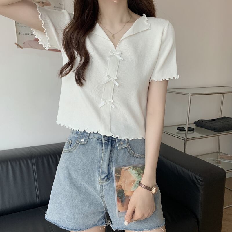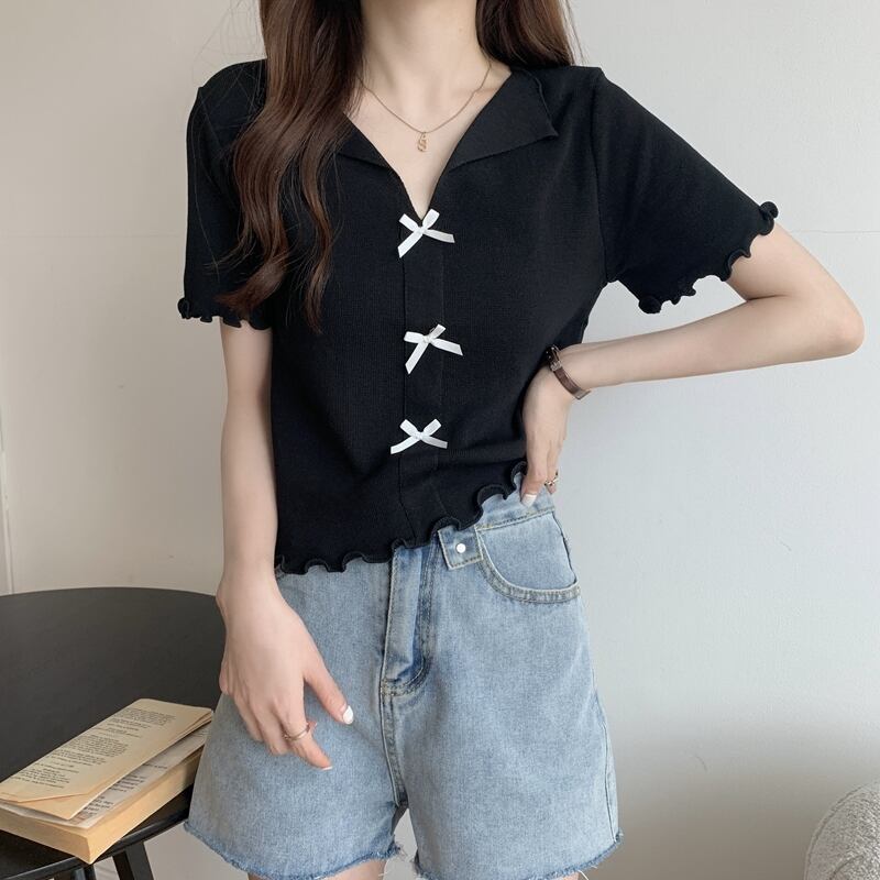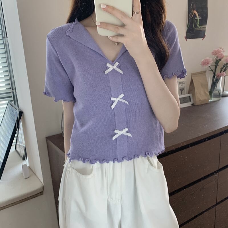 VネックTシャツレディース夏服ソリッド カラーカジュアルニットセーター トップス トレンド 夏物 ソリッドカラー YY68970185421