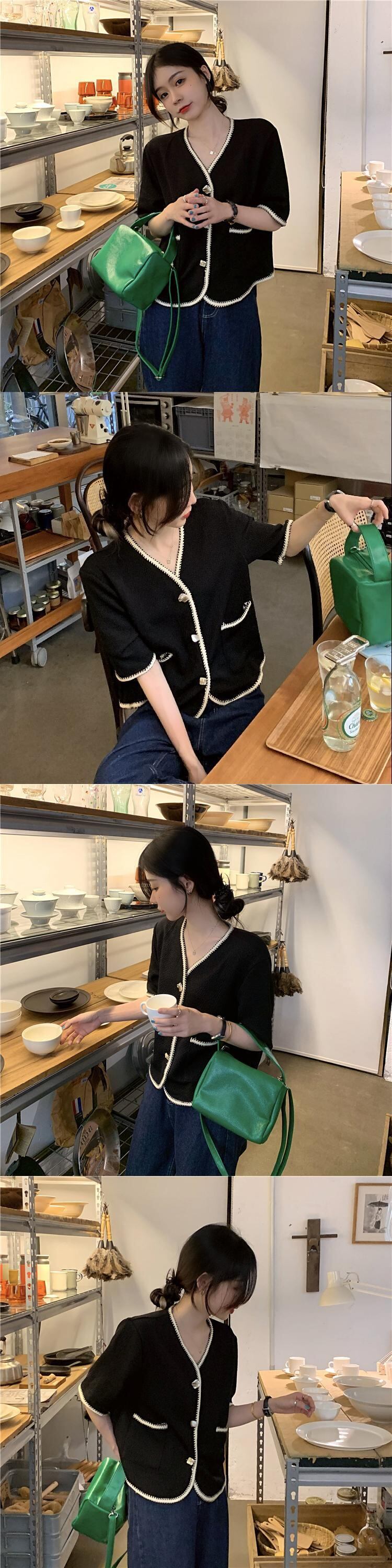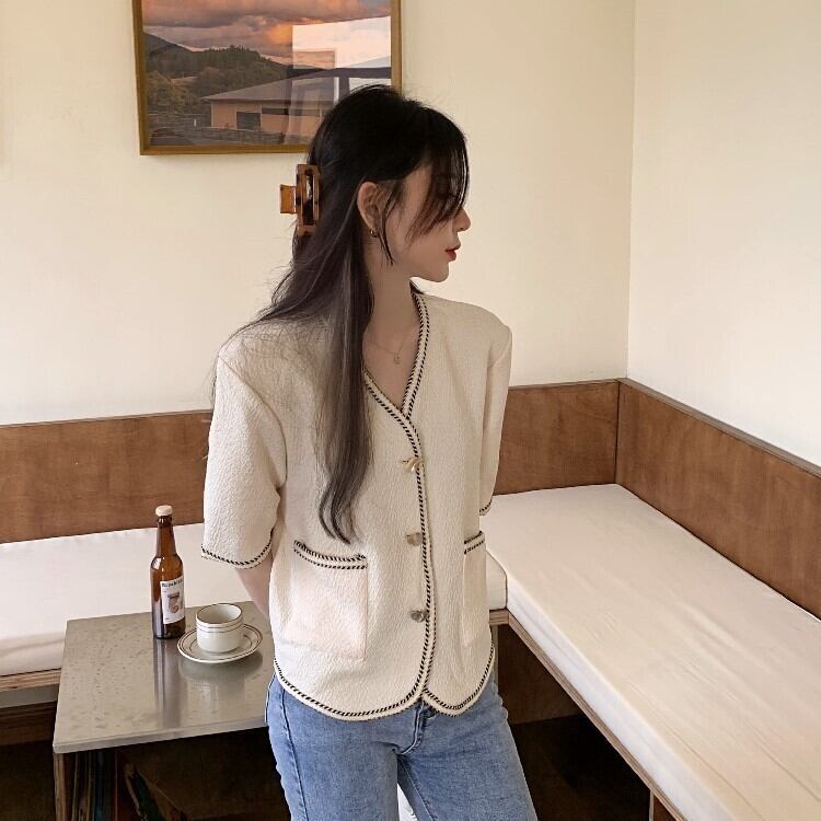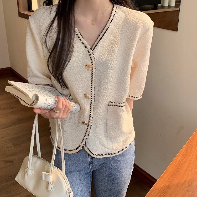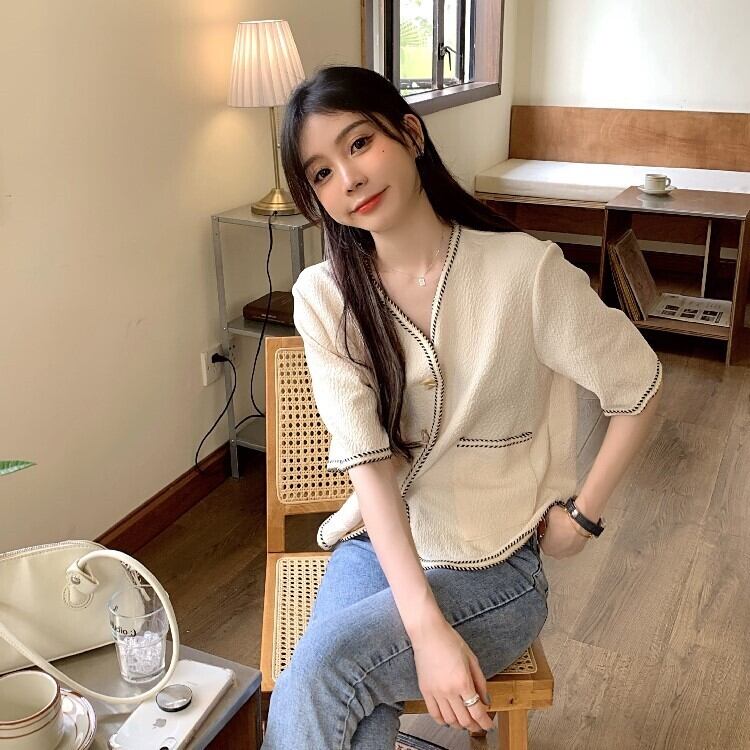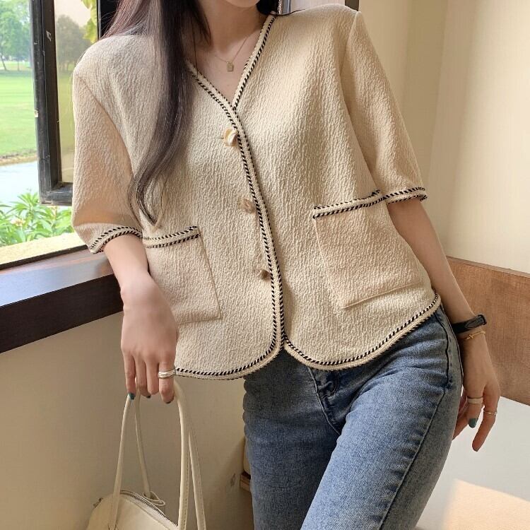 夏服薄手スタンダードVネックシャツ ルーズトップス レトロ 夏物 YY71650025850
