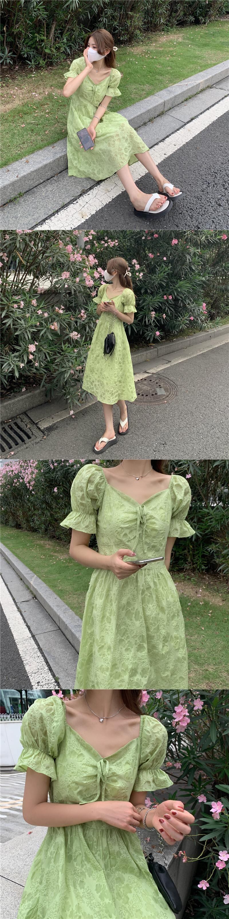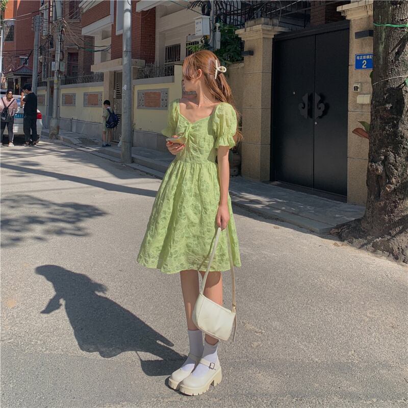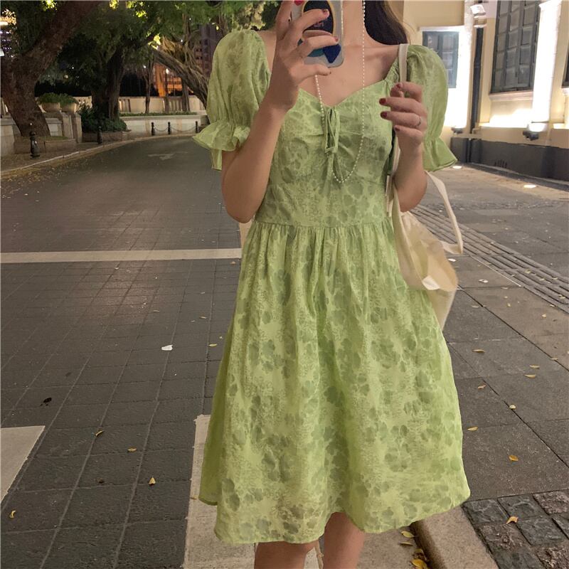 グリーンスリーブワンピースレディース夏服スタンダードスカート レトロ 夏物 SYJ40055744845