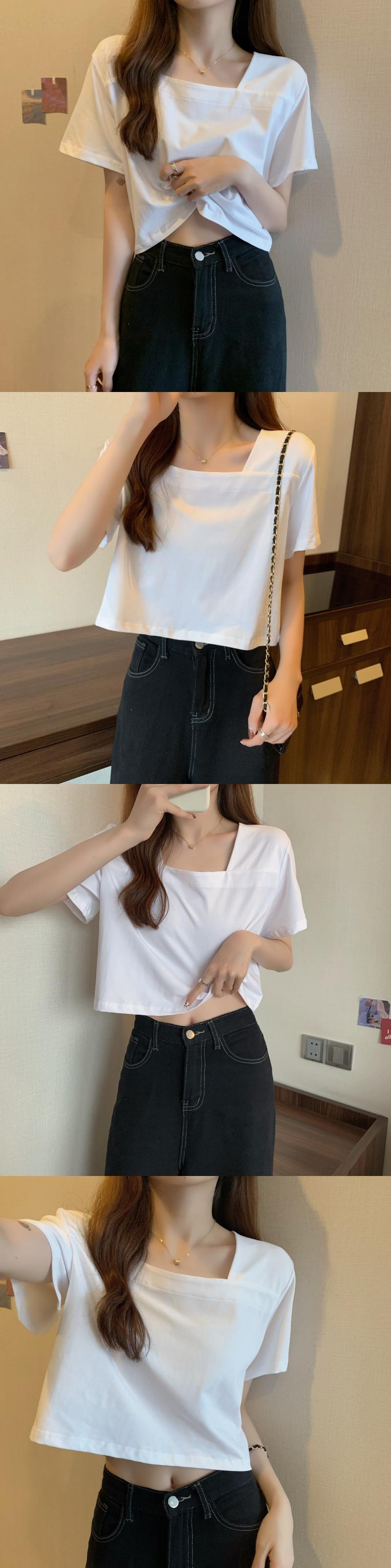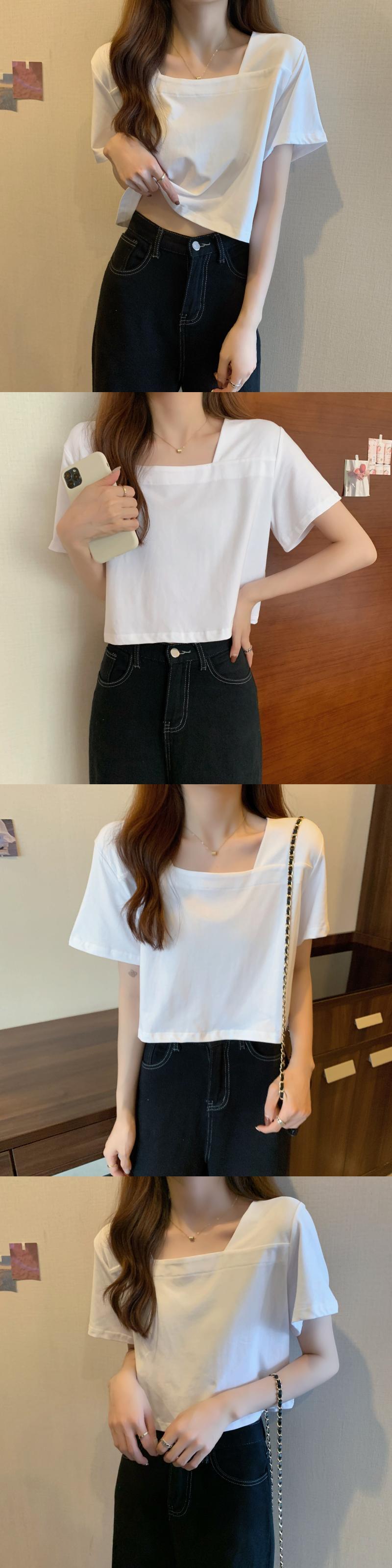 ホワイトショートTシャツ夏服カラーハイウェストウェストトップス トレンド 夏物 スクウェア ウエスト SYJ10834300468