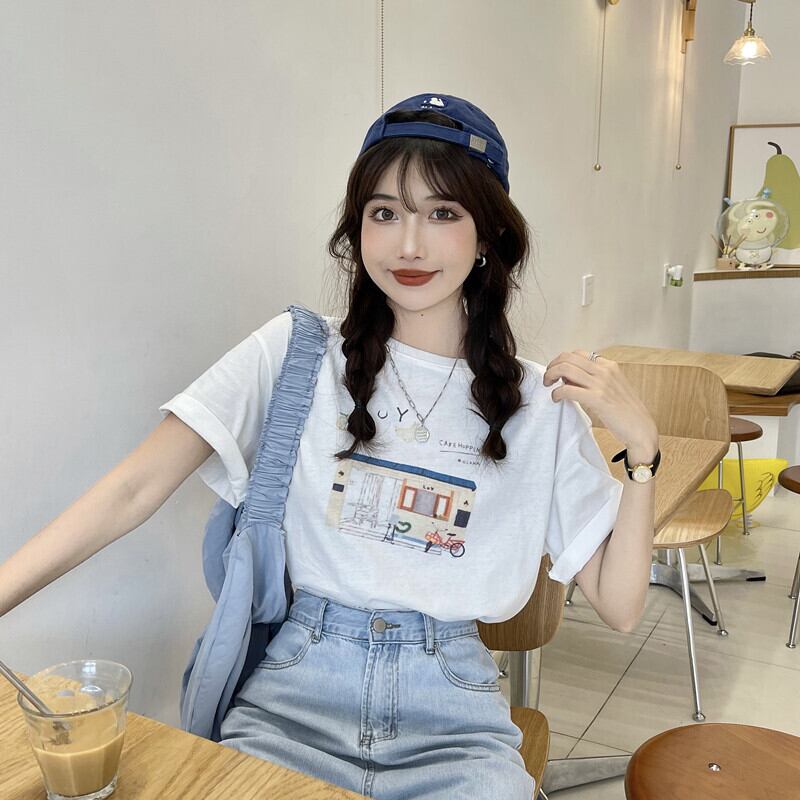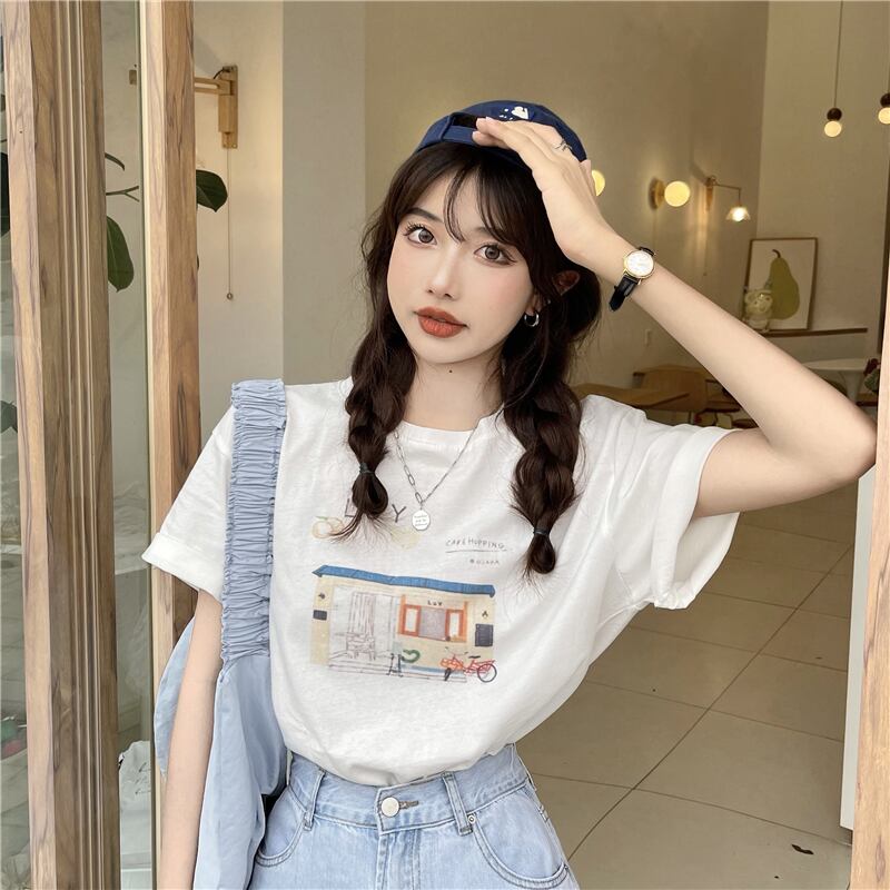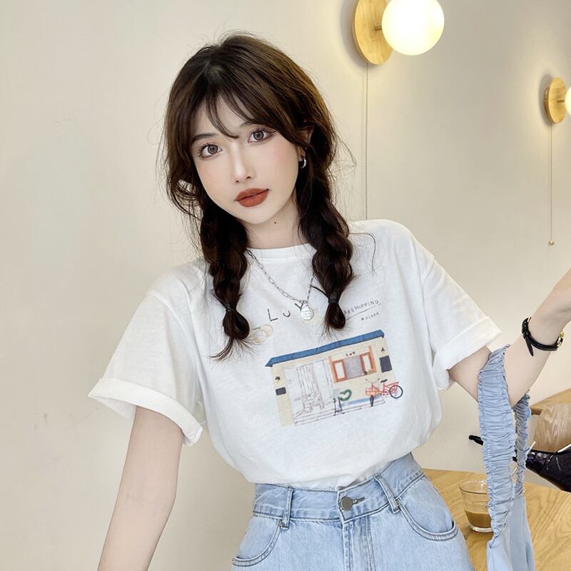 ホワイトTシャツレディース夏服薄手ルーズ韓国ファッションスタイルトレンド 夏物 SYJ18871797078