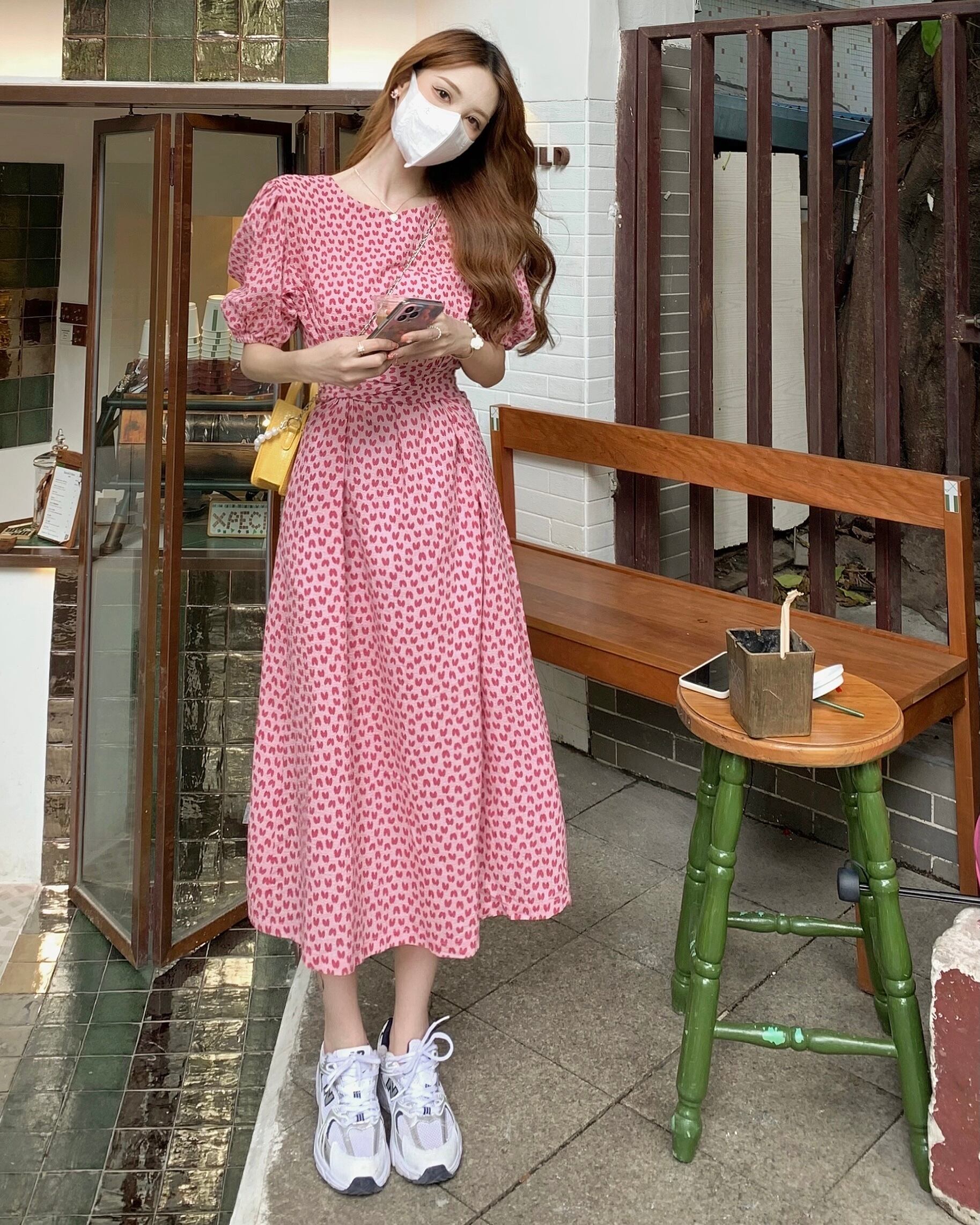 スリーブフローラルワンピースレディース夏服ロングスカート 夏物 花柄 SYJ27168866076