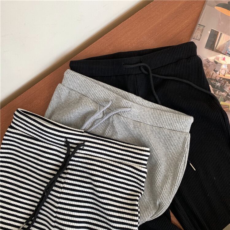 色:白いTシャツ,黒いTシャツ,グレーのスラックス,黒いスラックス,ストライプカジュアルパンツ