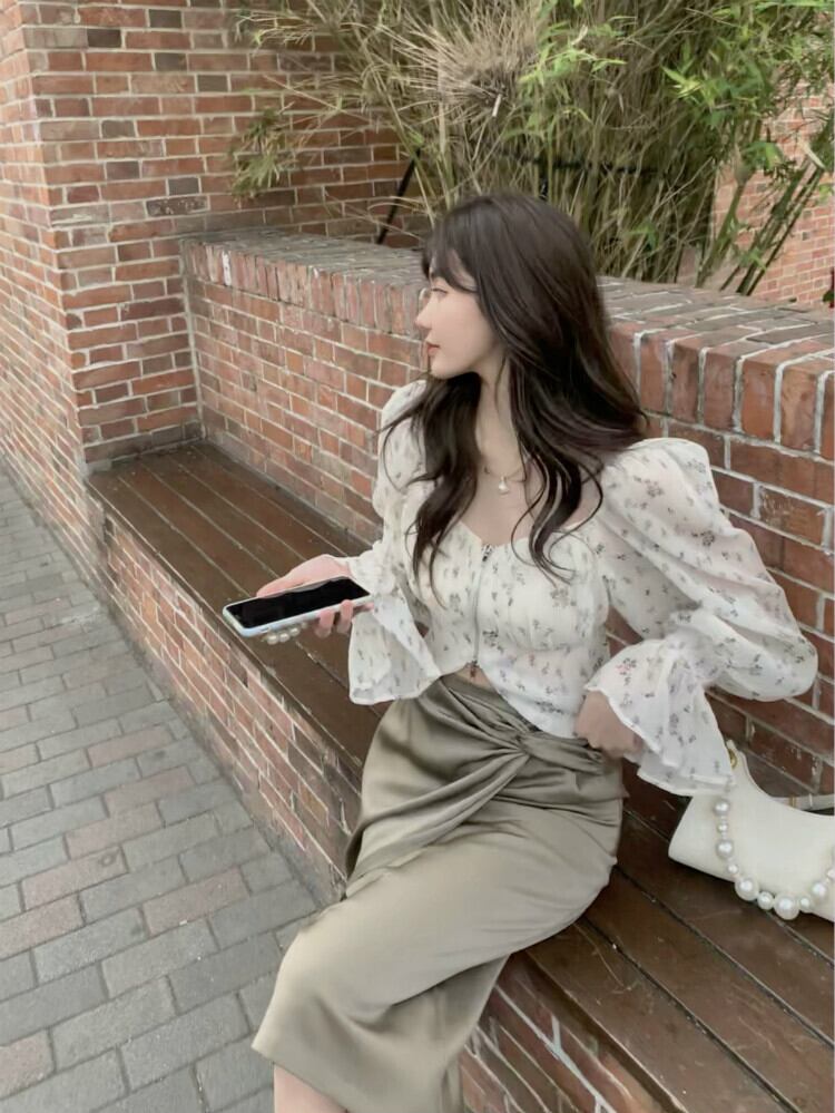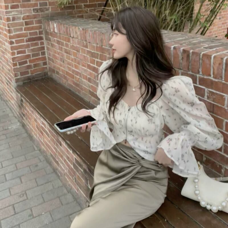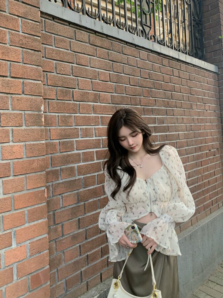 スカート 夏服シフォンシャツ フローラルブラウス 夏物 花柄 YY20016155807