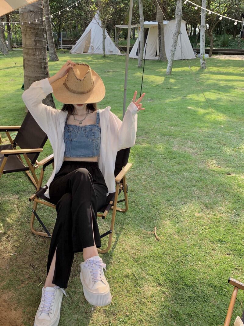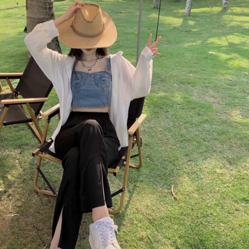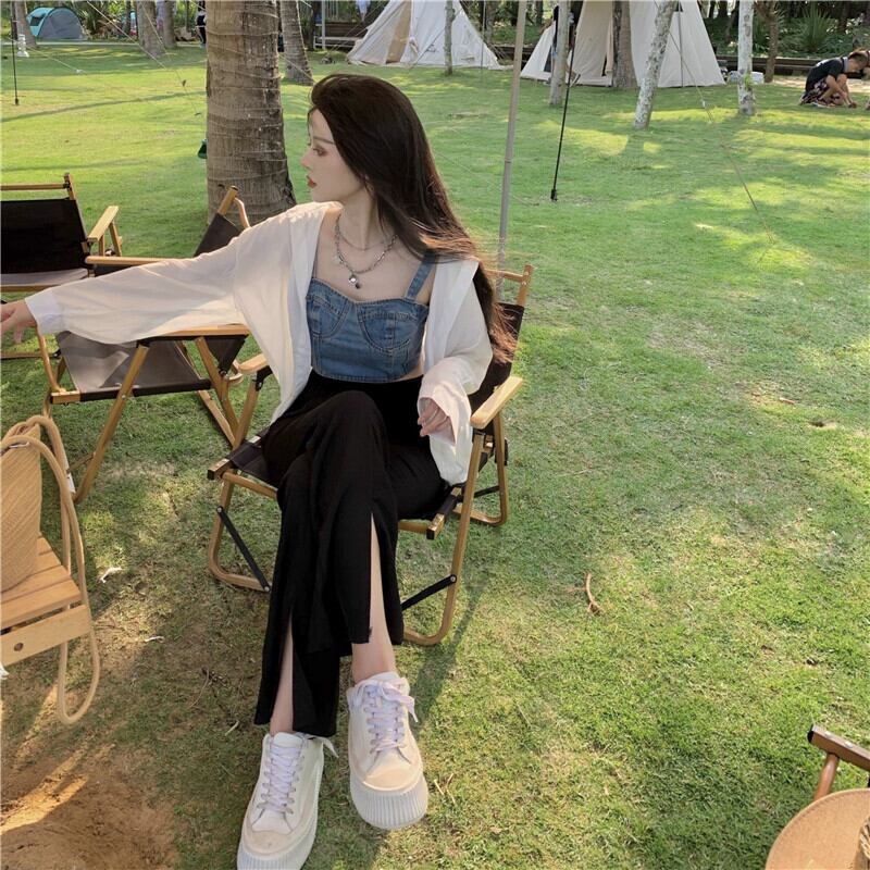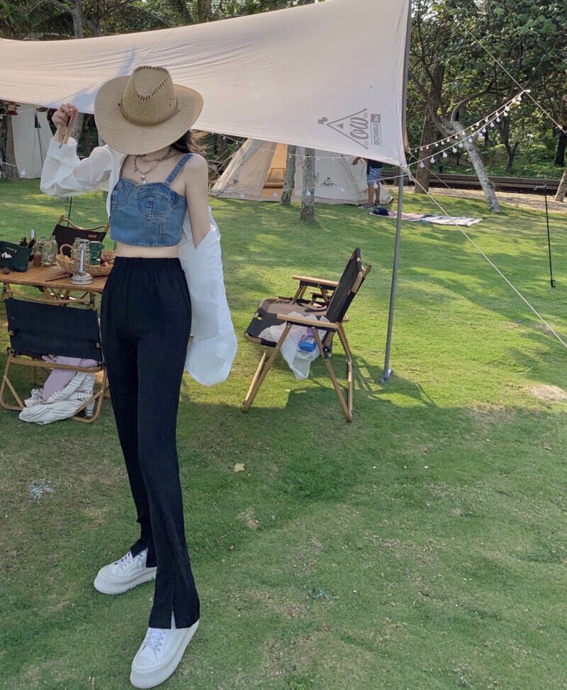 色:スプリットパンツ,白のシャツ,デニムハーネス