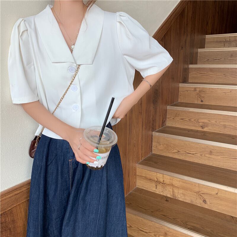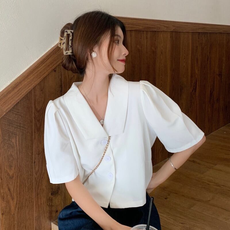 ホワイトシャツ 夏服韓国ファッションルーズショートトップス 夏物 スタイル YY90681708173