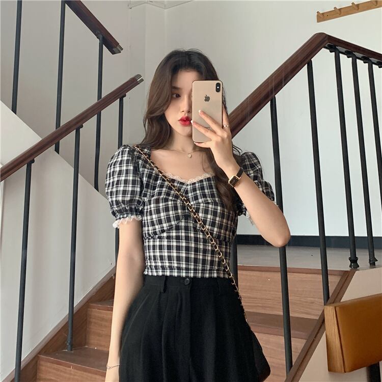 ブラウス スタンダード夏服スリムレースカラーシャツ レディース レトロ 夏物 スクウェア YY29865896610
