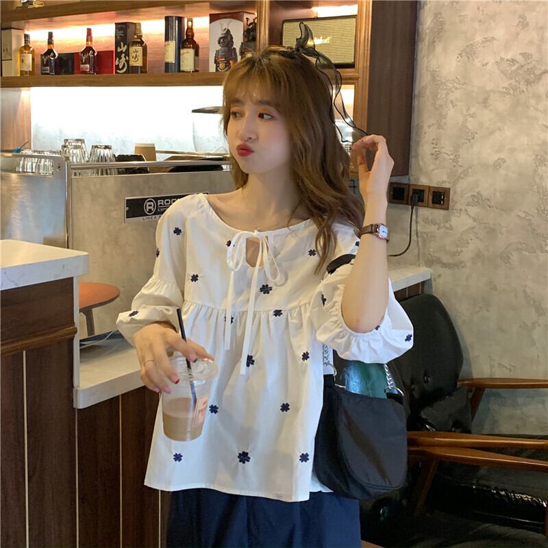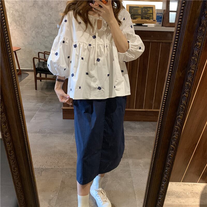 韓国ファッションスタンダード半袖スリーブトップス ソリッド カラーAラインスカート ショート レッド レトロ ハーフスリーブ ストリート 刺繍 ソリッドカラー ミドル丈 YY84795400762