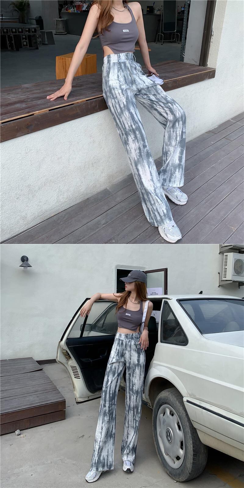 ロングパンツ 夏服ハイウェストルーズ 夏物 ウエスト YY43312821738