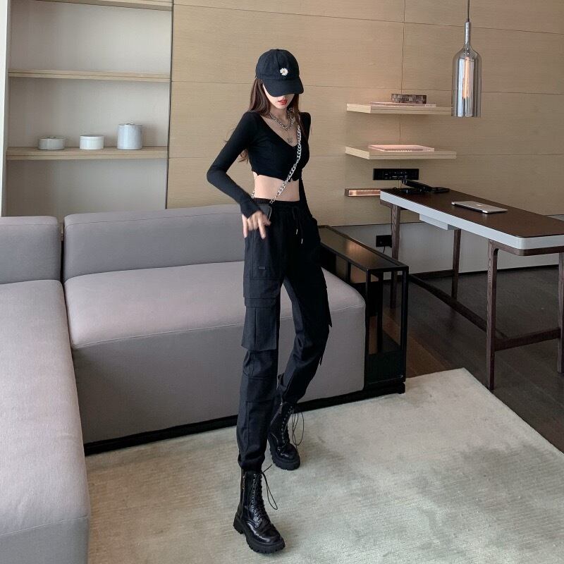 ブラックパンツハイウェストウェストパンツ スプリング夏服カジュアルルーズレギンス トレンド 春物 夏物 ウエスト YY63655035209