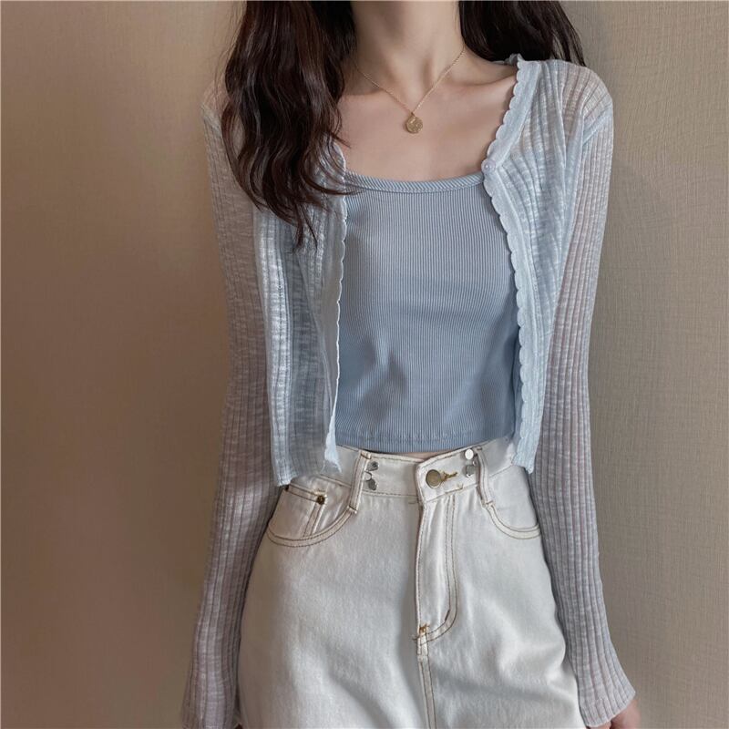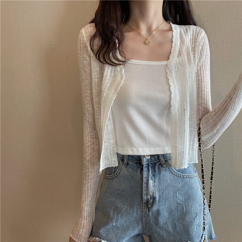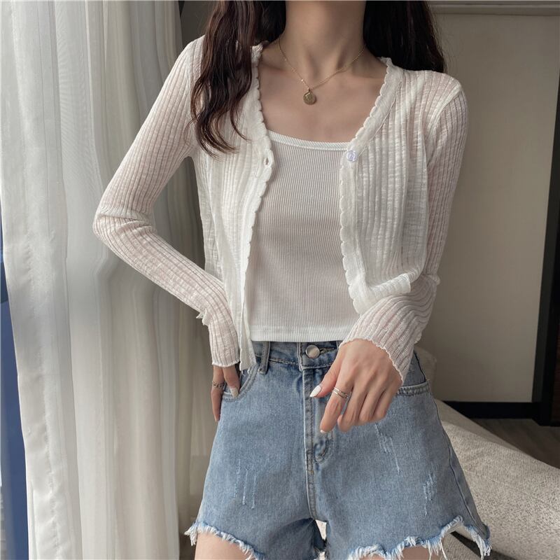 スプリングニット薄手ショートホワイトトップス カーディガン 春物 YY73154066956