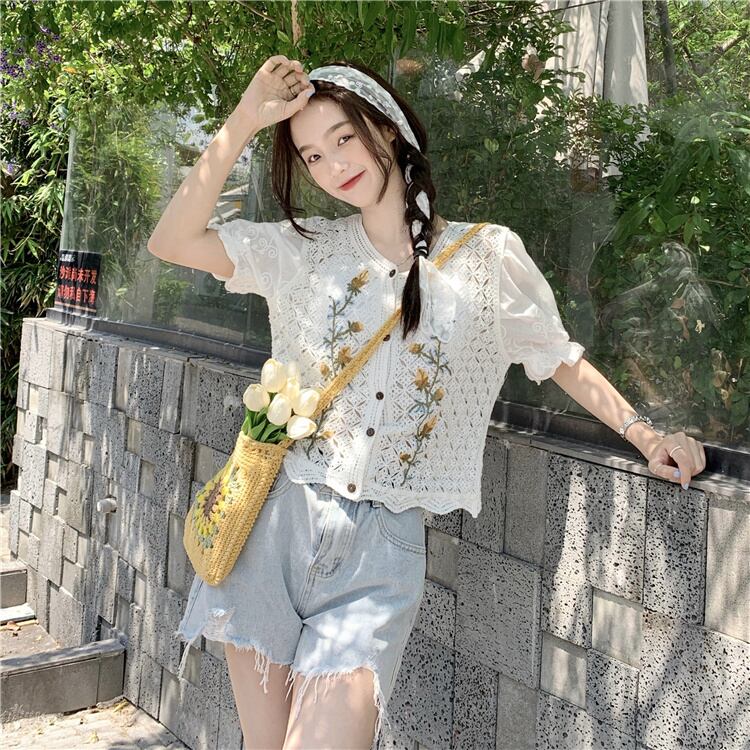 スリーブホワイトシャツ 夏服薄手ショートトップス 夏物 YY50683809819