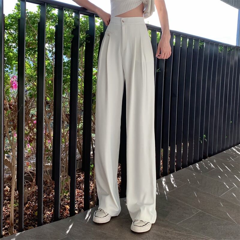 パンツ レディースルーズ薄手スプリング夏服ハイウェストウェストカジュアルホワイトワイドレッグ 春物 夏物 ワイドパンツ ウエスト YY40669036600