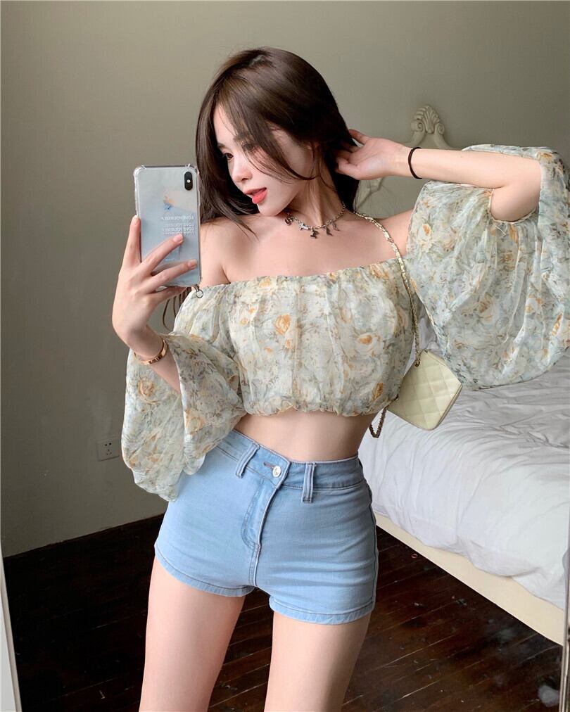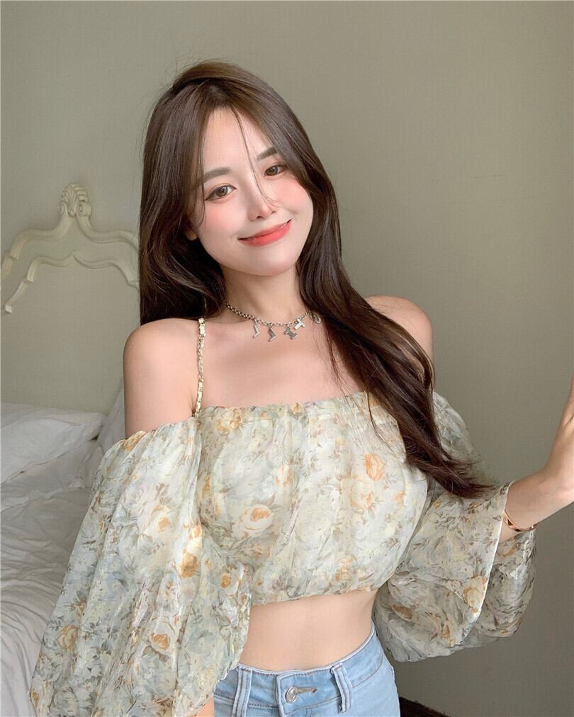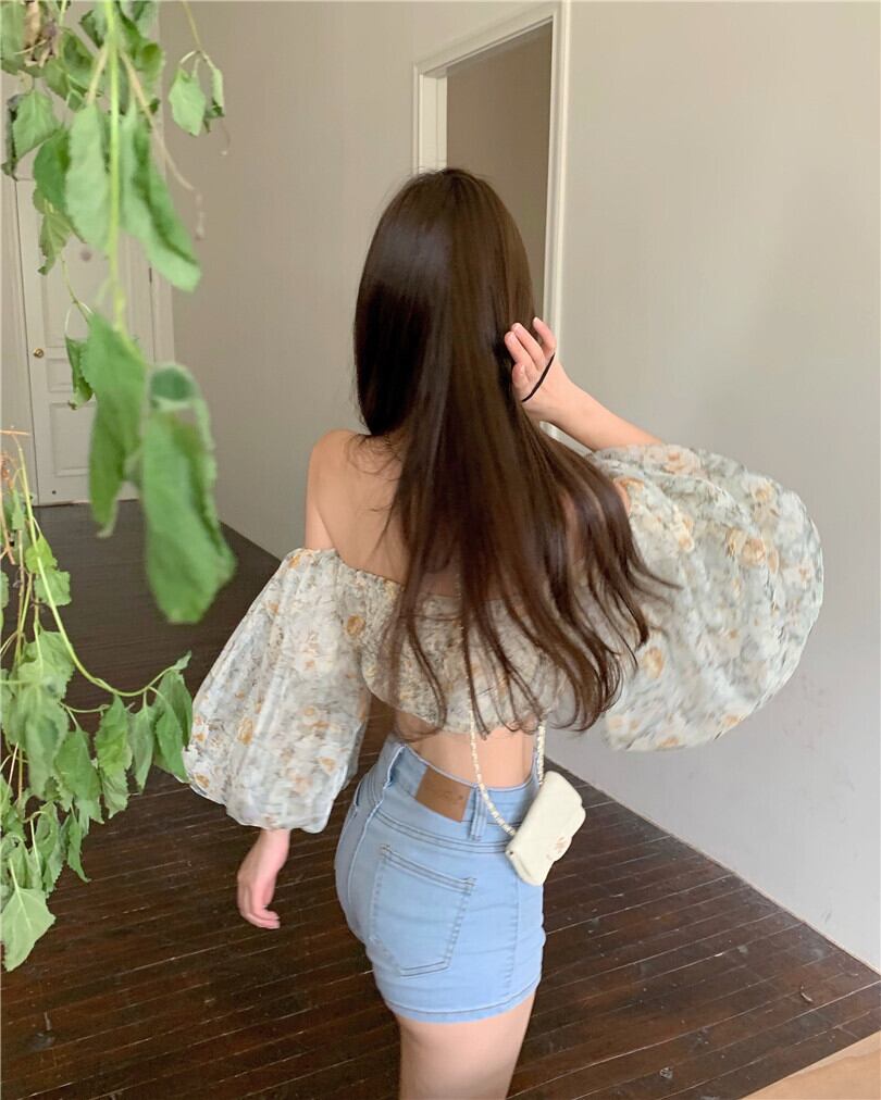 フローラルシャツ レディースショートスリーブ夏服トップス ランタンスリーブ 夏物 花柄 YY26250037478